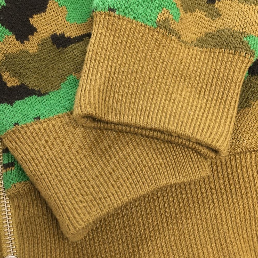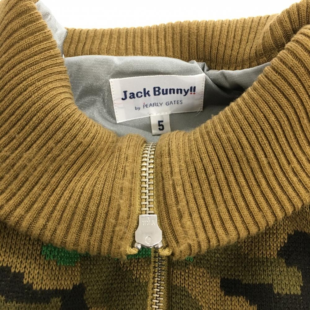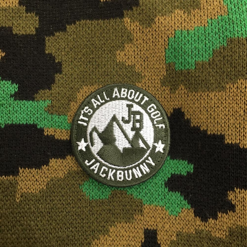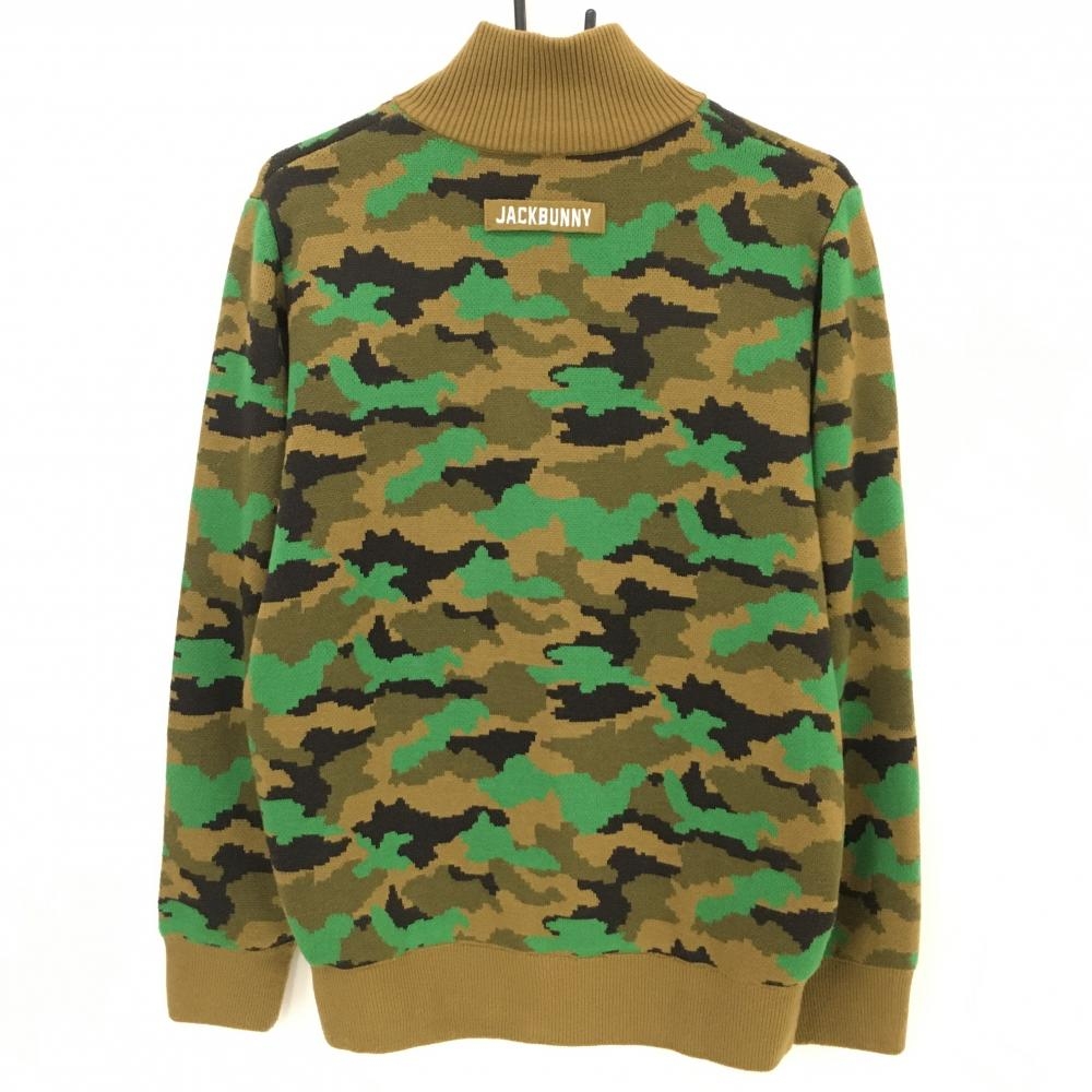 【美品】ジャックバニー ニットジャケット ブラウン×グリーン カモフラ柄 迷彩 裏地付き メンズ 5(L) ゴルフウェア Jack Bunny
