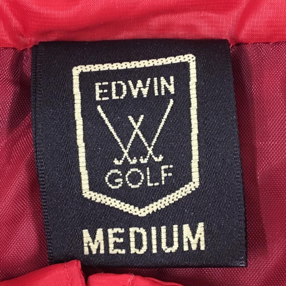 【美品】エドウィン 2WAYダウンジャケット レッド 袖着脱可 メンズ MEDIUM ゴルフウェア EDWIN GOLF