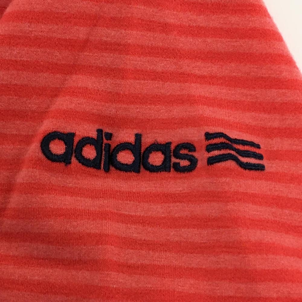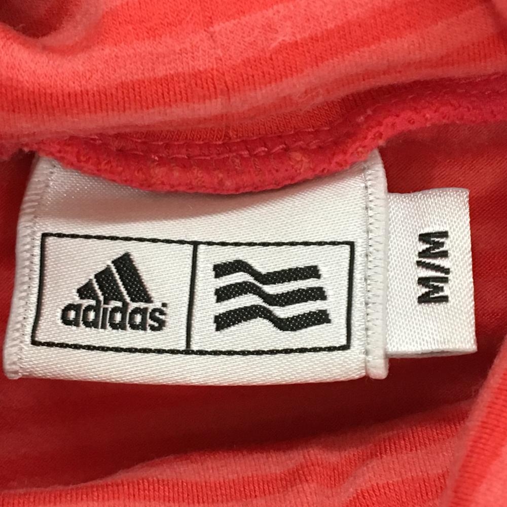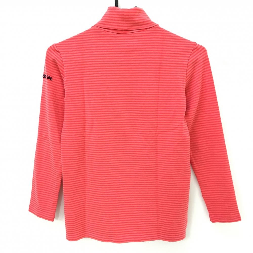 【超美品】アディダス 長袖ハイネックシャツ レッド系 ボーダー ロゴネイビー 裏起毛 レディース M/M ゴルフウェア adidas