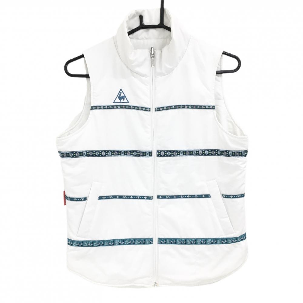 ルコックゴルフ 中綿リバーシブルベスト 白×ピンク ロゴ刺しゅう 後ろテープボーダー レディース M ゴルフウェア le coq sportif
