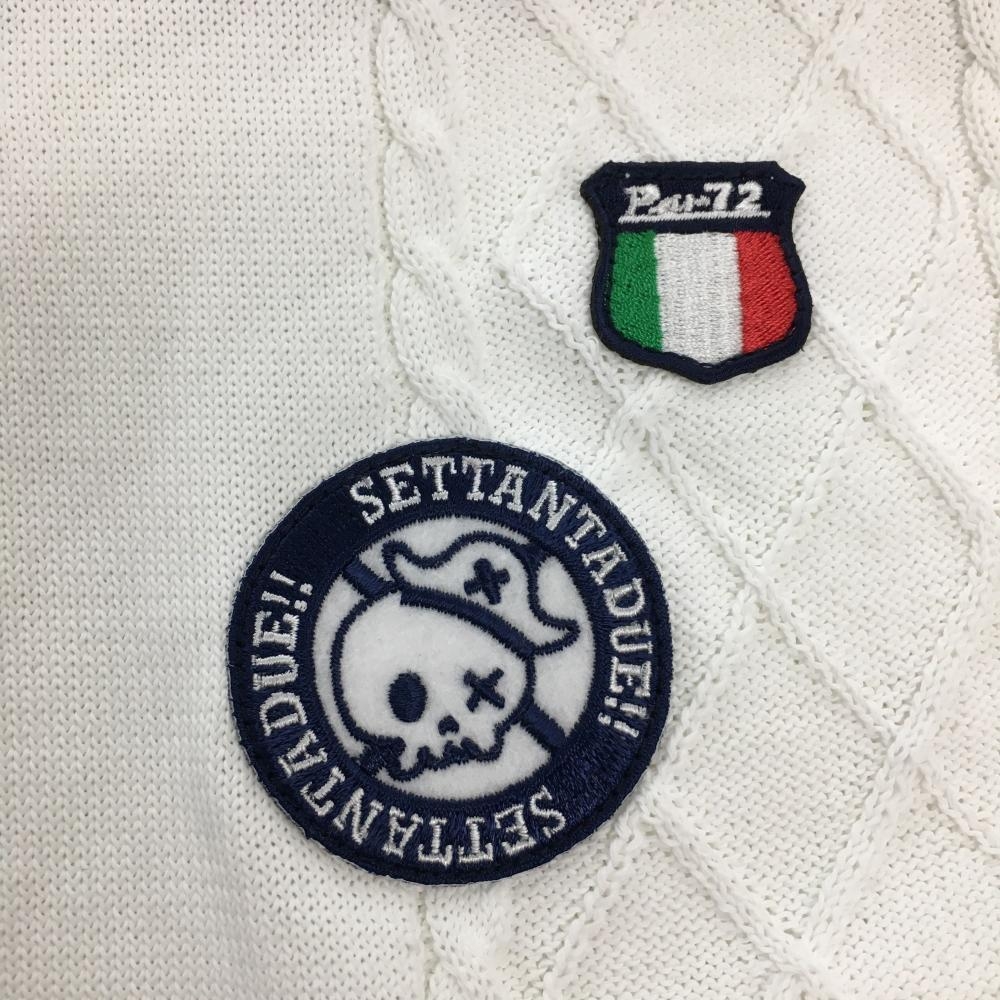 【美品】パーセッタンタドゥエ セーター 白×ネイビー 一部ケーブル編み ワッペン ニット レディース M ゴルフウェア PAR72
