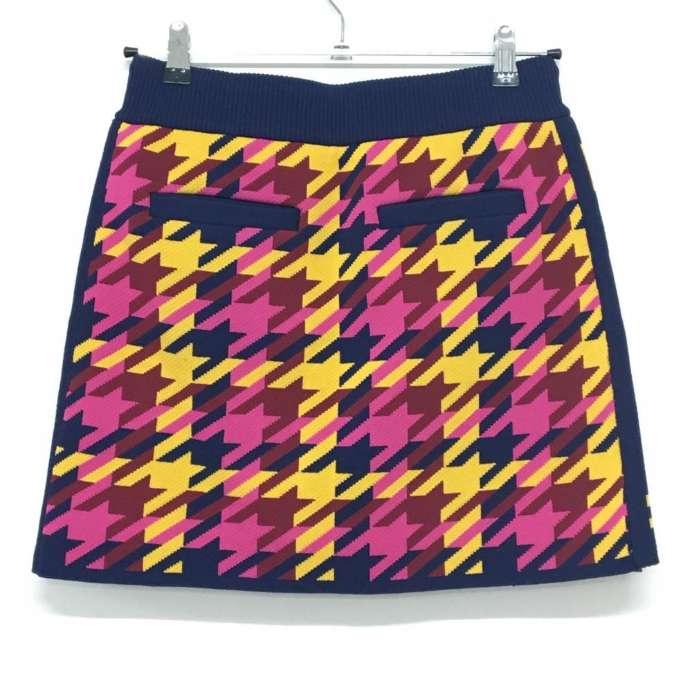 【超美品】ラウドマウス ニットスカート ネイビー×イエロー 千鳥格子 裏地付 サイドロゴ レディース M ゴルフウェア LOUDMOUTH