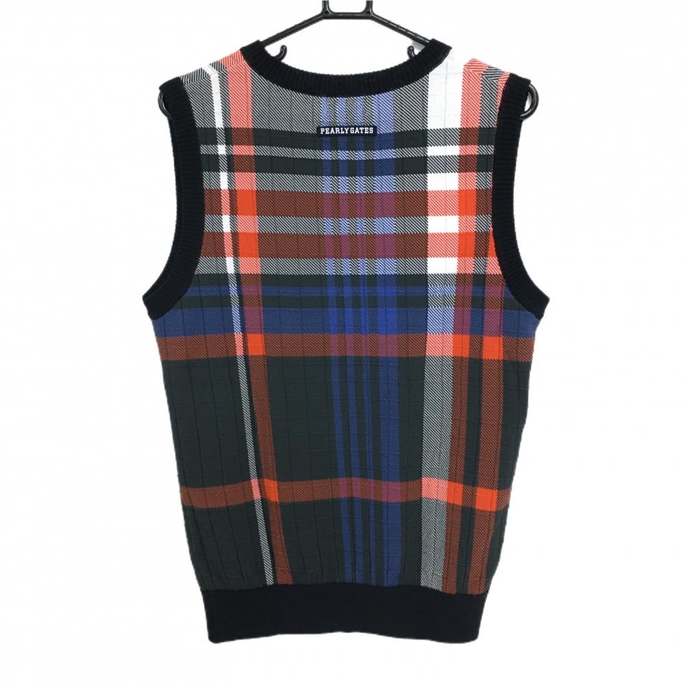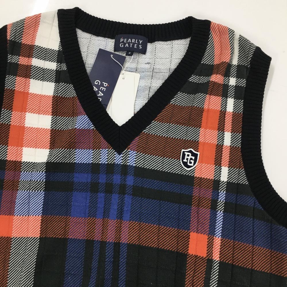 【新品】パーリーゲイツ ニットベスト ネイビー×レッド×ブルー Vネック チェック メンズ 4(M) ゴルフウェア PEARLY GATES