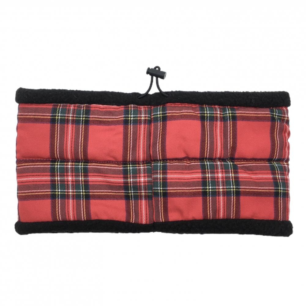 【超美品】ジャックバニー ネックウォーマー レッド×グリーン チェック 裏ボア ドローコード FR ゴルフウェア Jack Bunny