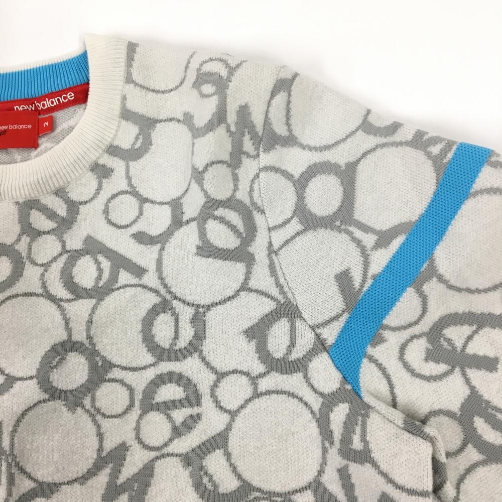 ニューバランスゴルフ セーター 白×グレー 総柄 ロゴ ニット レディース 2(L) ゴルフウェア New Balance