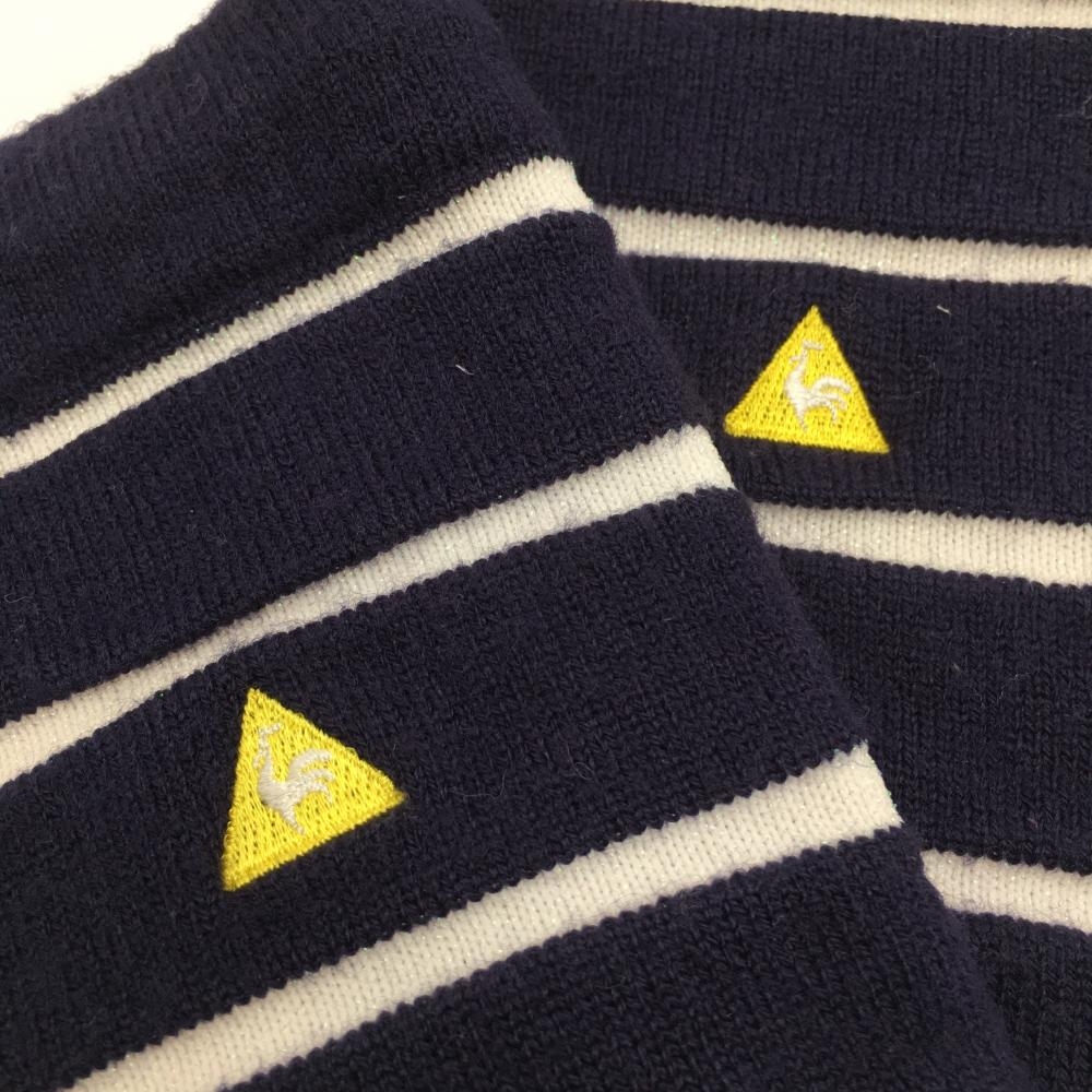 ルコック レッグウォーマー ネイビー×白 ボーダー ロゴ刺しゅう レディース ゴルフウェア le coq sportif