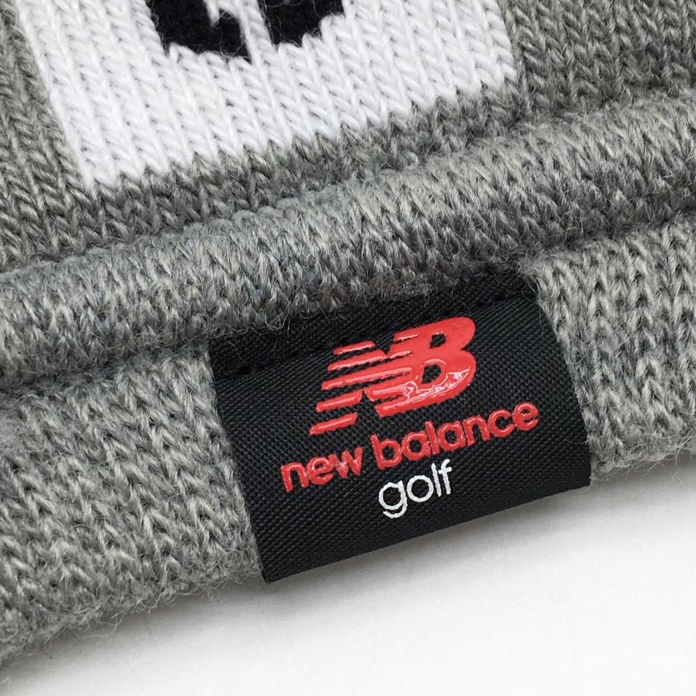 【超美品】ニューバランスゴルフ ニットレッグウォーマー グレー×白 ロゴライン 裏パイル レディース ゴルフウェア New Balance