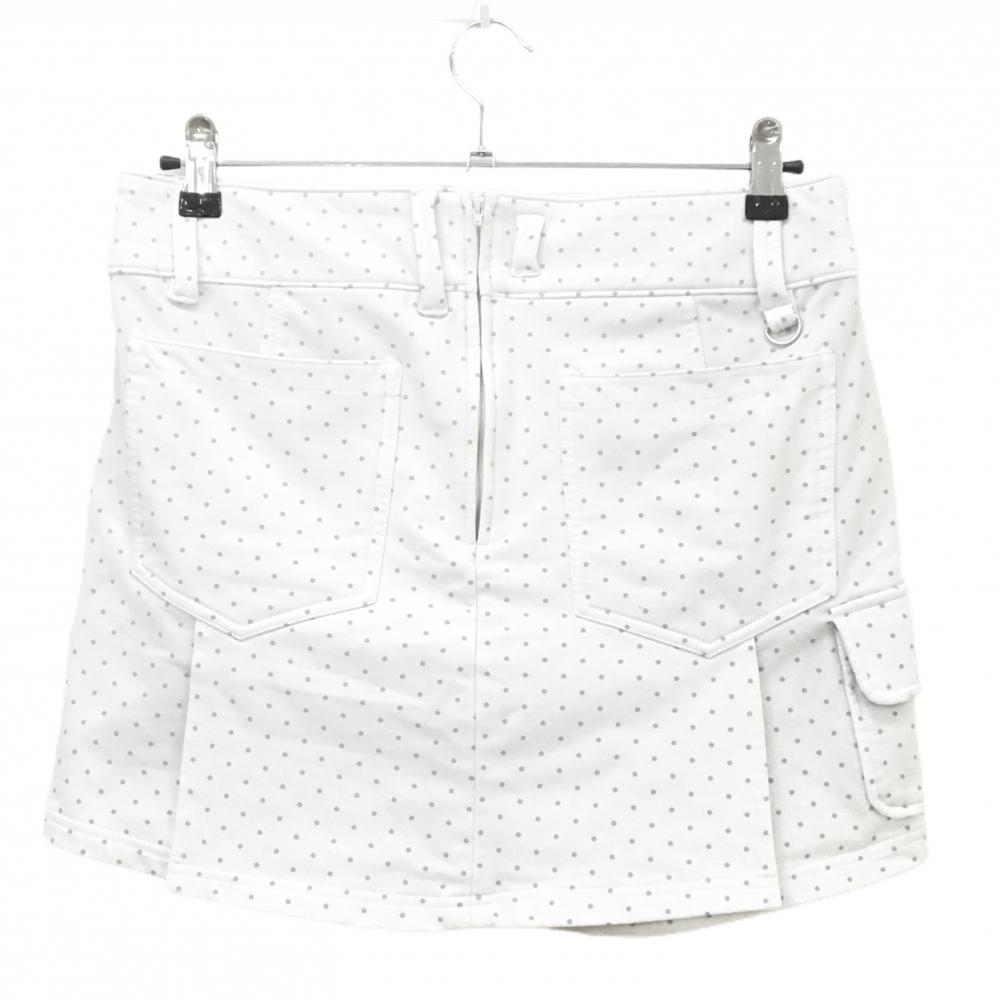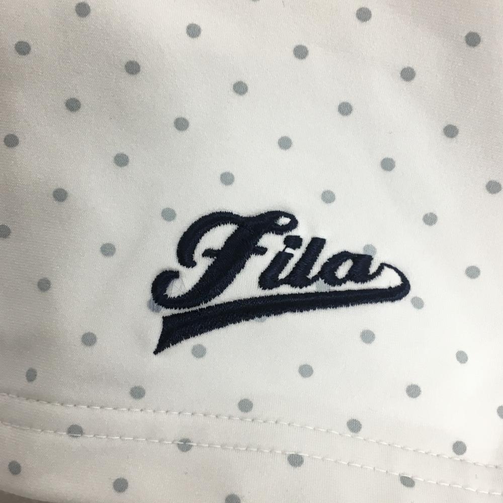 【美品】フィラゴルフ スカート 白×グレー ドット柄 ロゴ刺しゅう 裏起毛 内側パンツ レディース L ゴルフウェア FILA GOLF