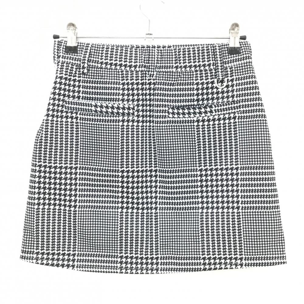 【美品】デルソル スカート 白×黒 総柄 一部千鳥格子 裏地有り レディース M ゴルフウェア DELSOL