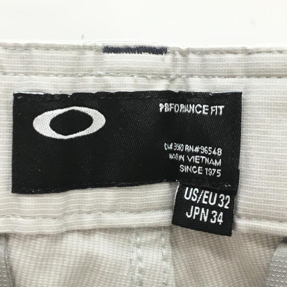 オークリー パンツ ライトグレー×白 細ストライプ ロゴダークグレー ティー装着可 メンズ 34 ゴルフウェア Oakley
