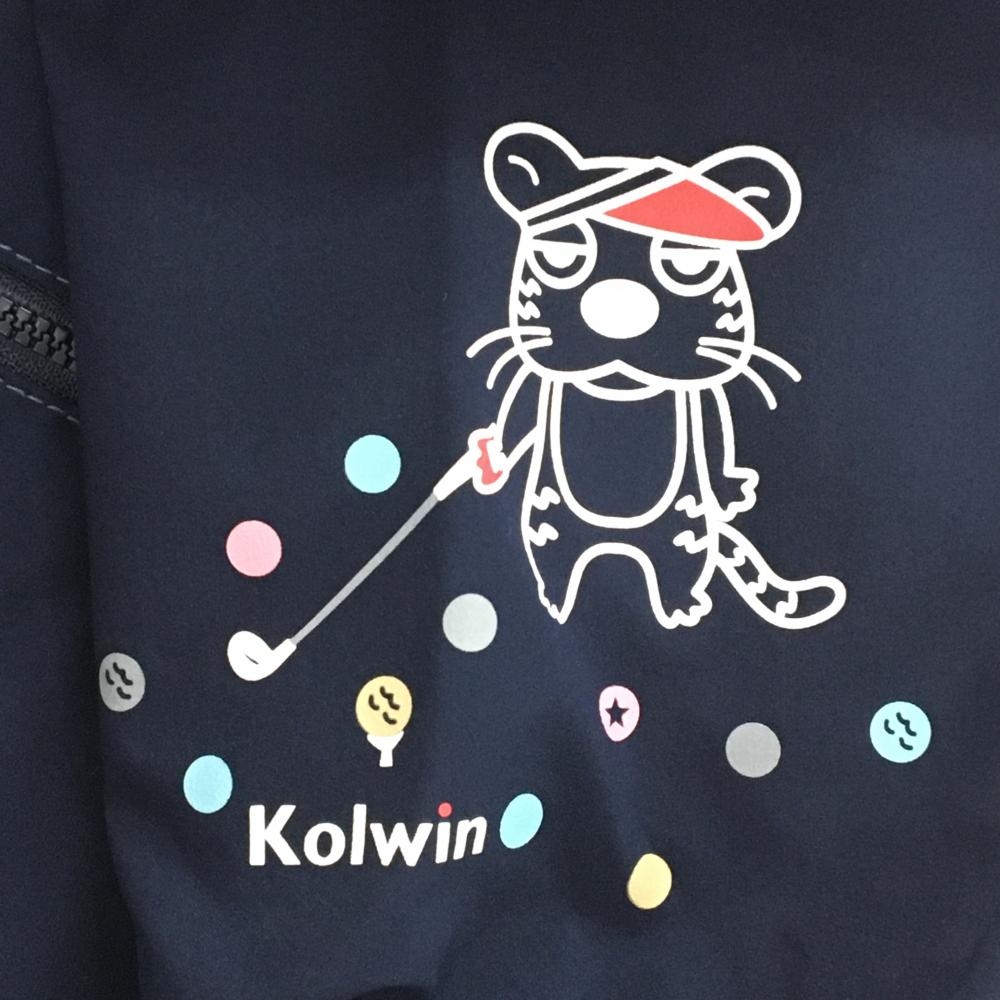 【超美品】コルウィン 2WAYジャケット ネイビー ロゴ白 袖着脱可 レディース M ゴルフウェア Kolwin