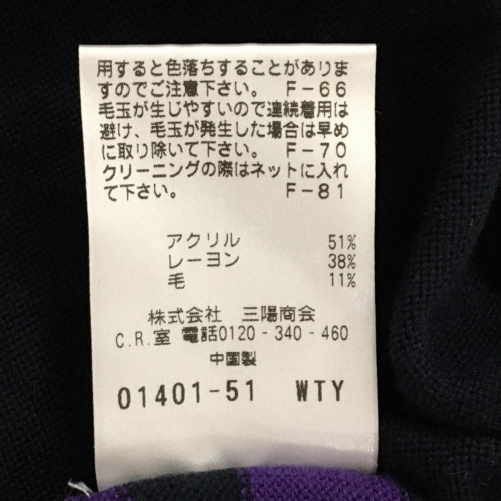 【超美品】ポールスチュアートスポーツ セーター ダークネイビー×パープル ニット ウール混 レディース M ゴルフウェア Paul Stuart SPORT