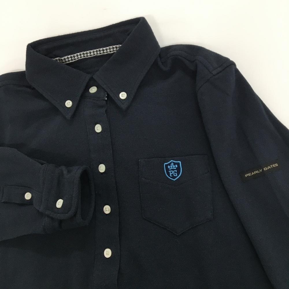【美品】パーリーゲイツ 長袖ポロシャツ ダークネイビー ボタンダウン 胸ポケット レディース 1(M) ゴルフウェア PEARLY GATES