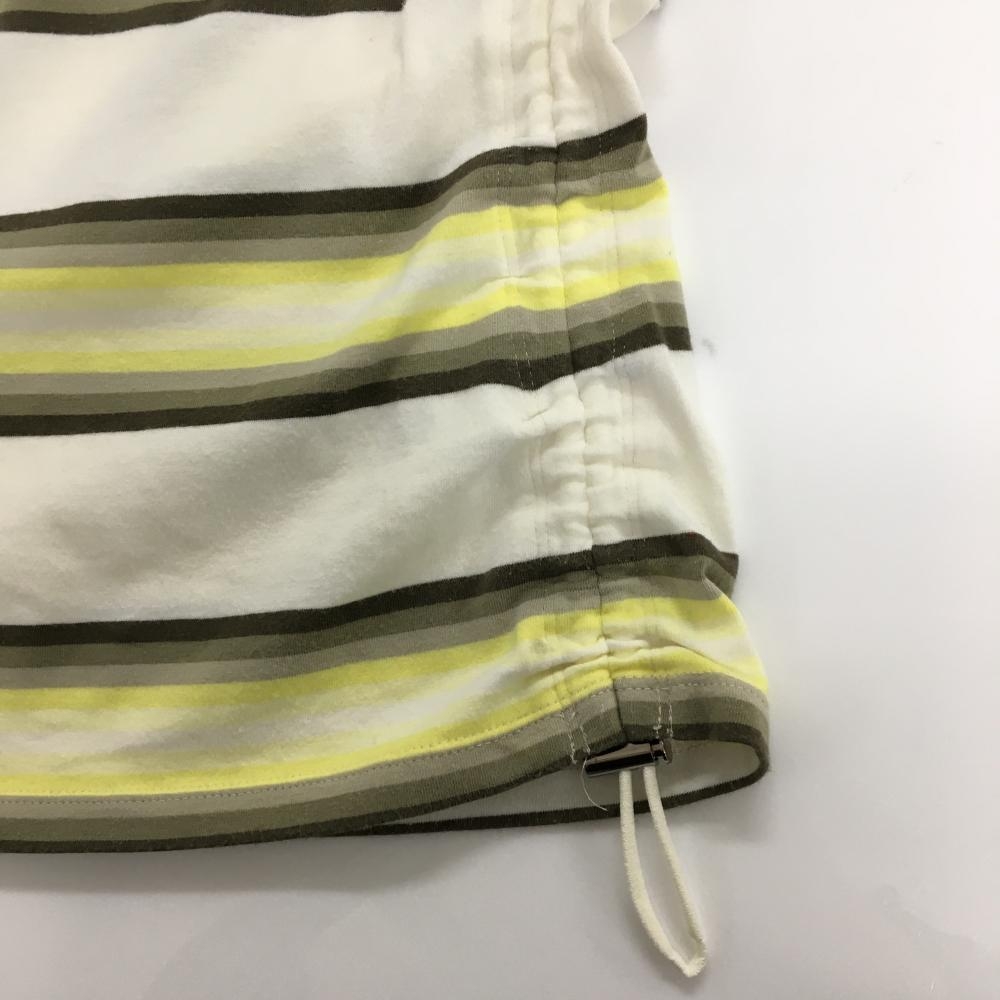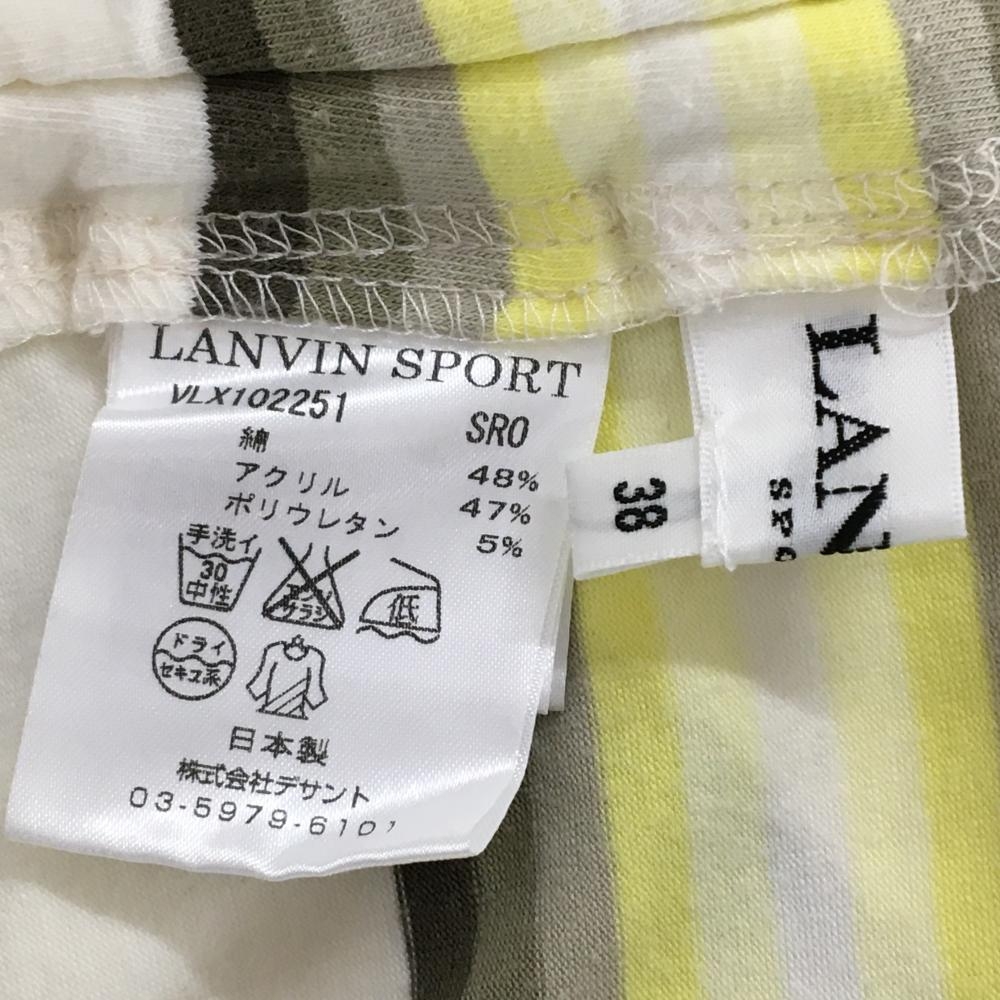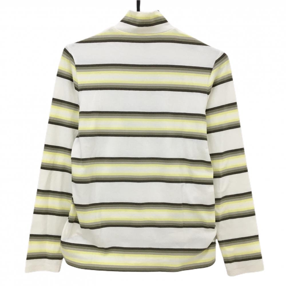 ランバンスポール 長袖ハイネックシャツ 白×イエロー×カーキ ボーダー 微起毛 レディース 38(M) ゴルフウェア LANVIN SPORT