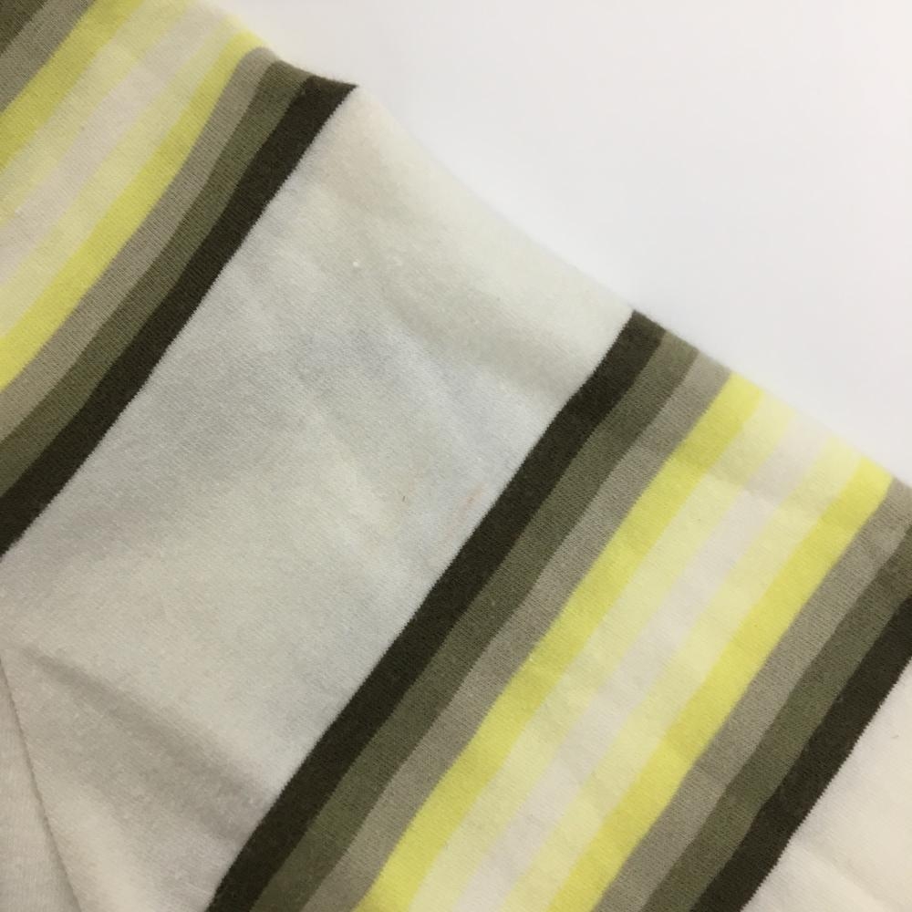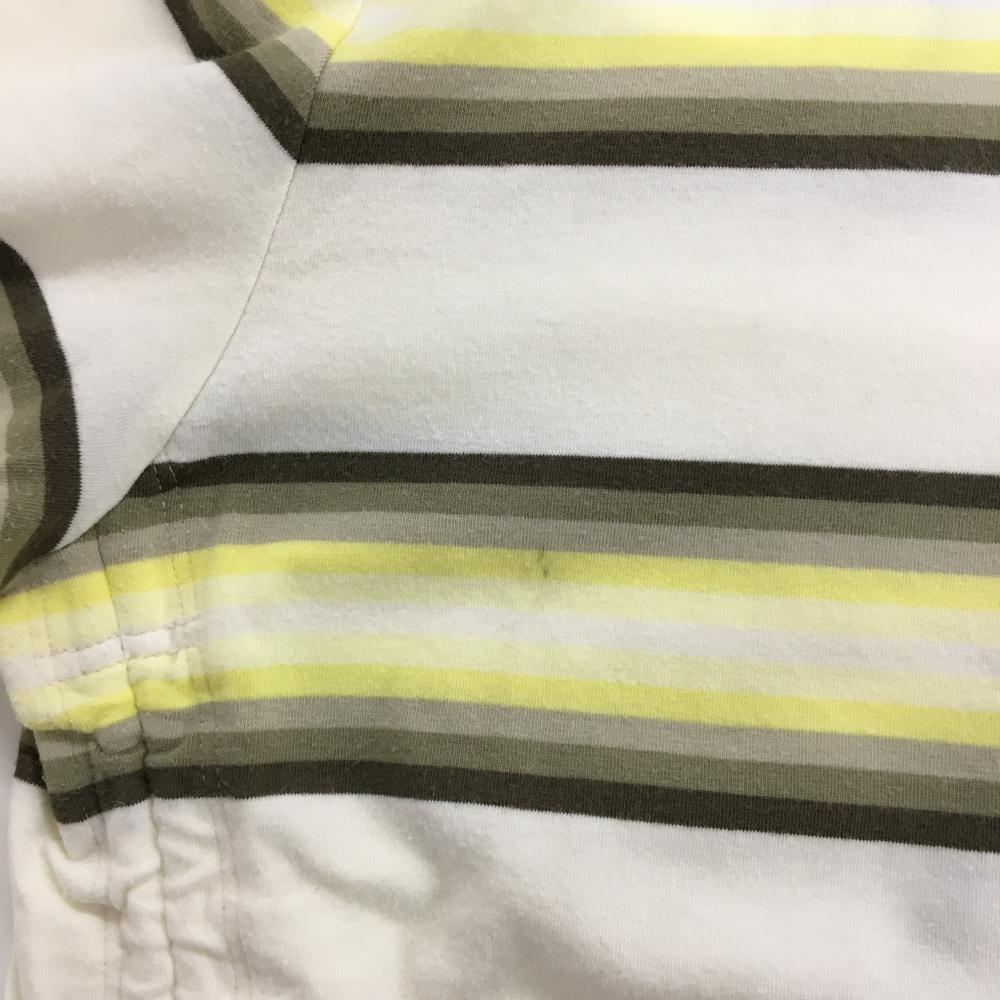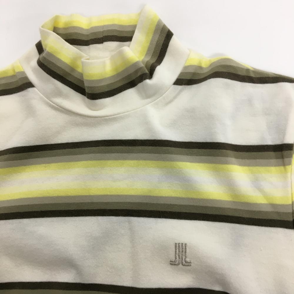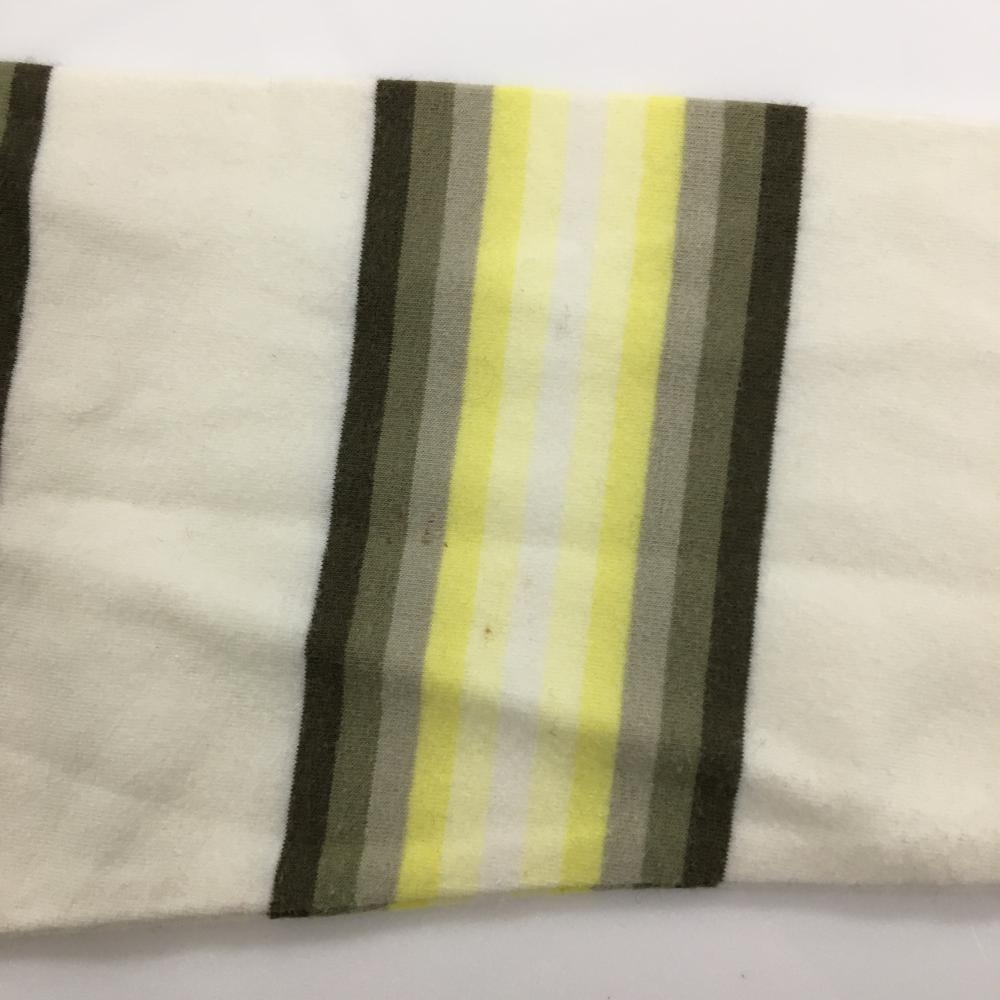 ランバンスポール 長袖ハイネックシャツ 白×イエロー×カーキ ボーダー 微起毛 レディース 38(M) ゴルフウェア LANVIN SPORT
