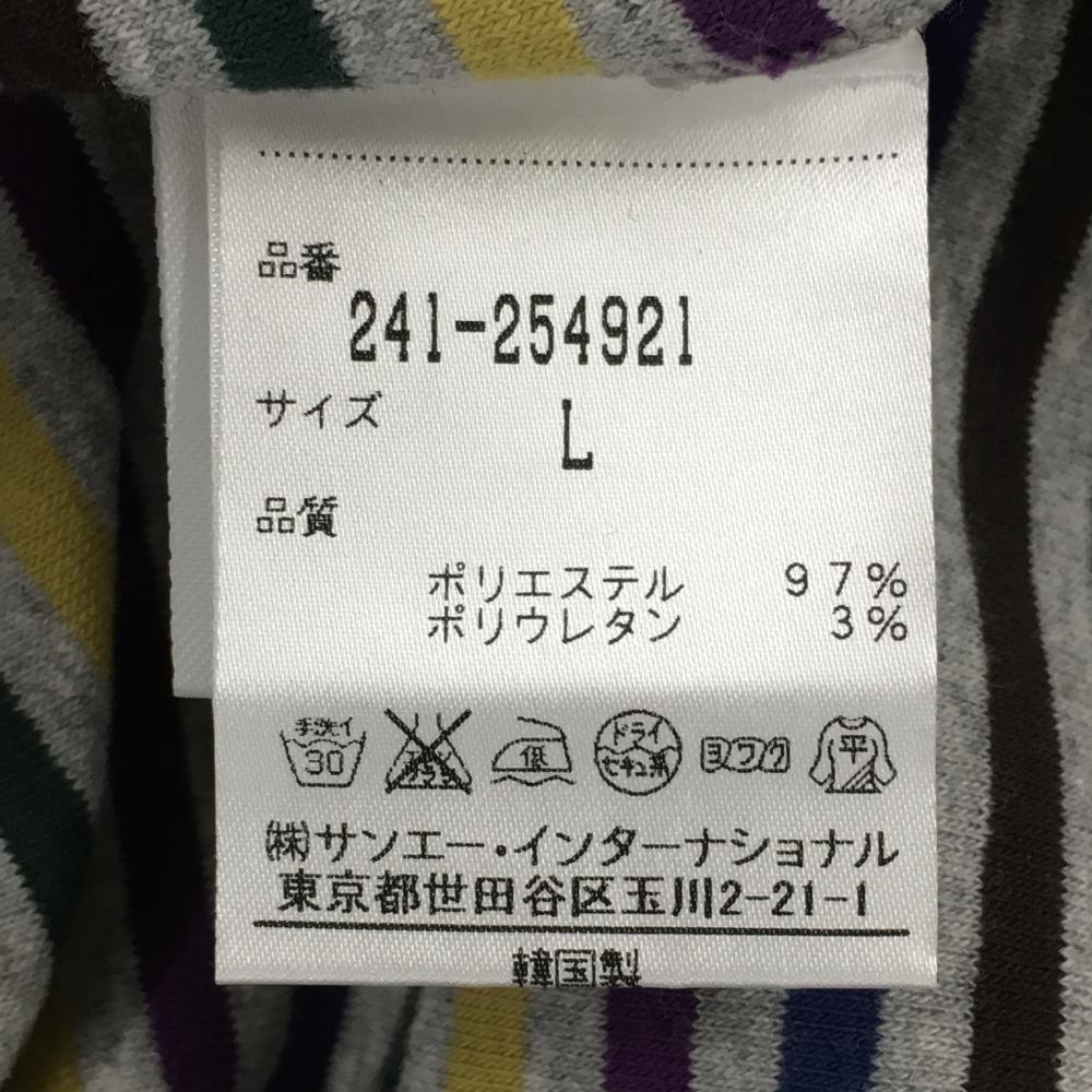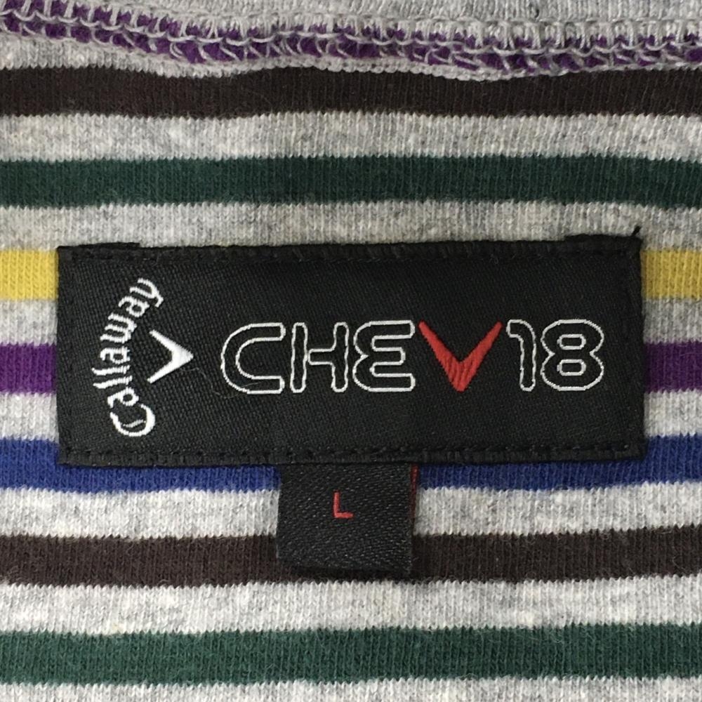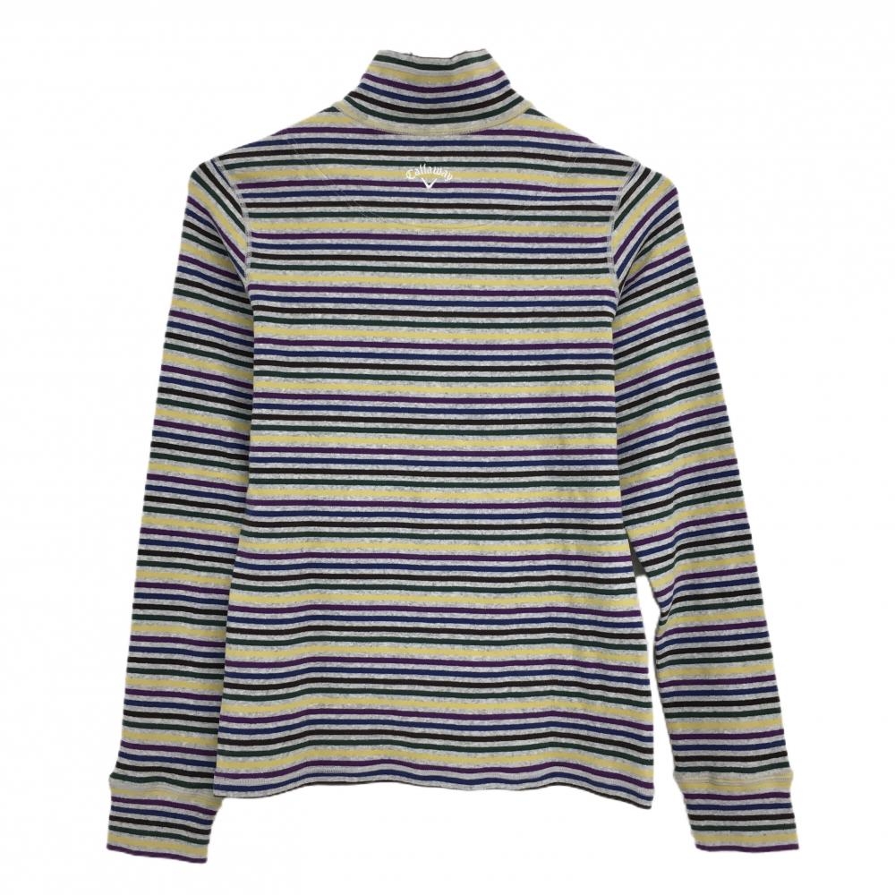 【美品】キャロウェイ 長袖ハイネックシャツ グレー×マルチカラー ハーフジップ ロゴ刺しゅう レディース L ゴルフウェア Callaway