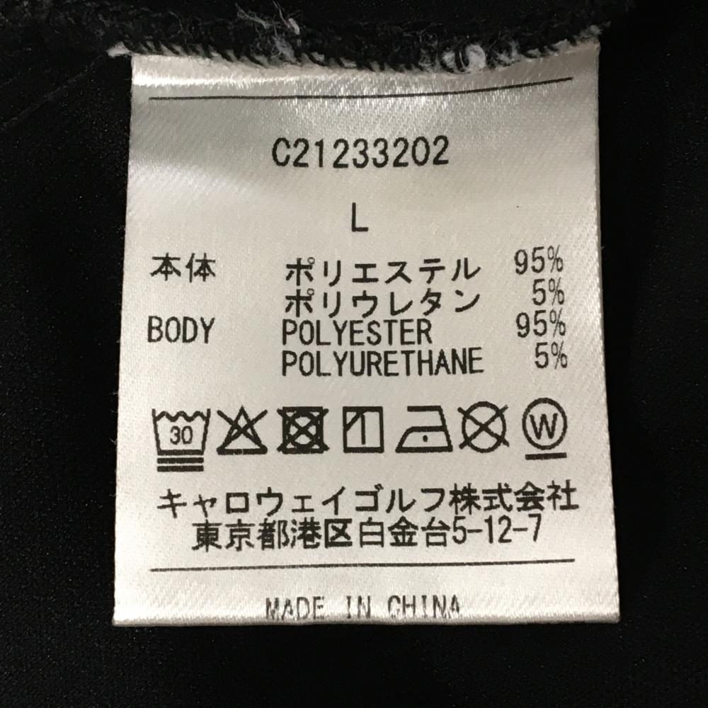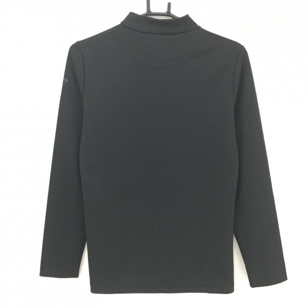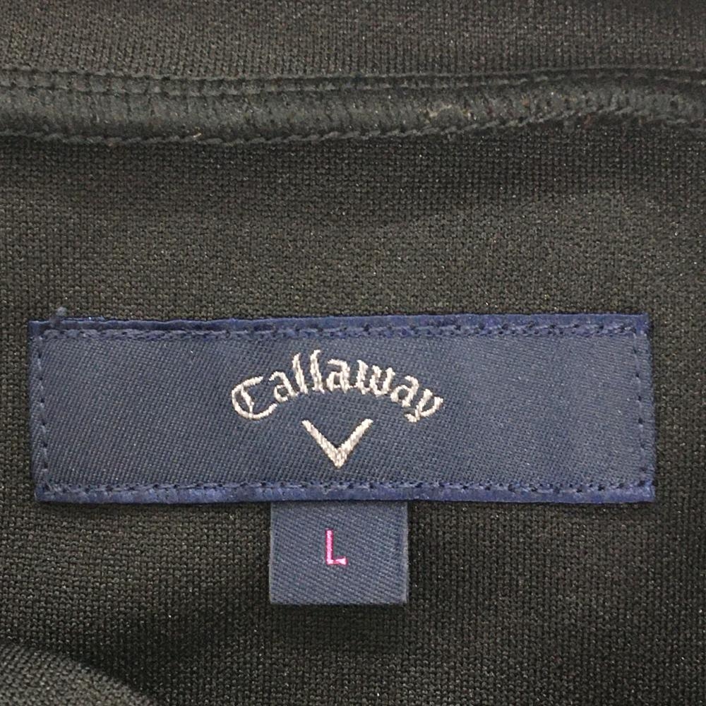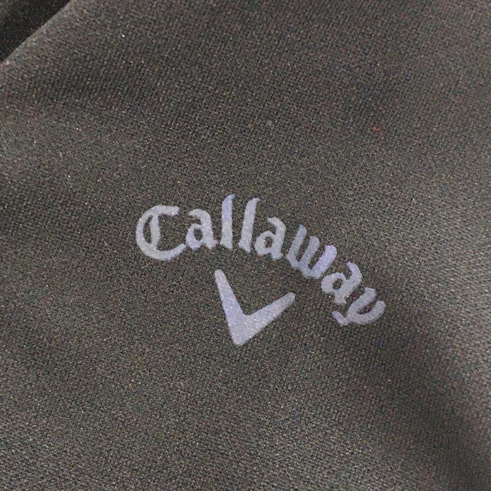 【超美品】キャロウェイ 長袖ハイネックシャツ 黒×イエロー×グレー フロントロゴプリント レディース L ゴルフウェア Callaway