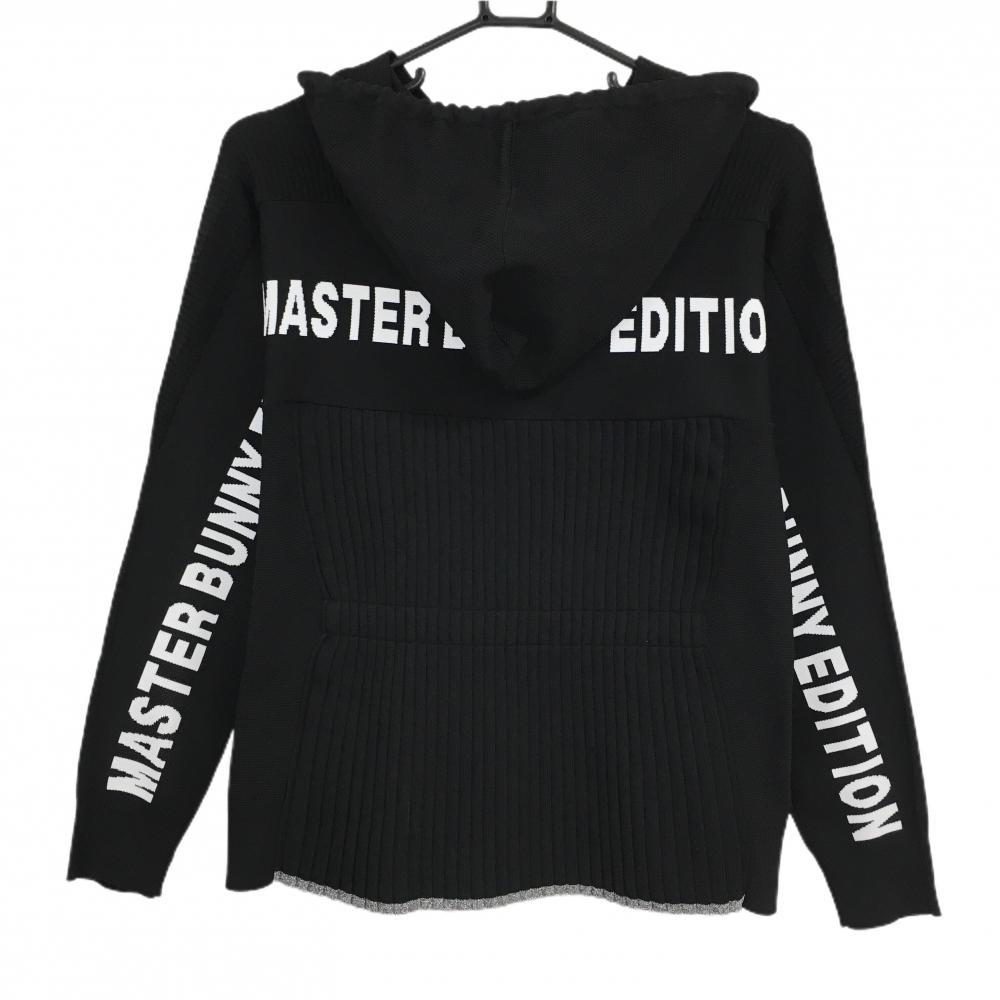 【超美品】マスターバニー ジップニットパーカー 黒×白 背面ロゴ 後裾プリーツ レディース 0(S) ゴルフウェア MASTER BUNNY EDITION