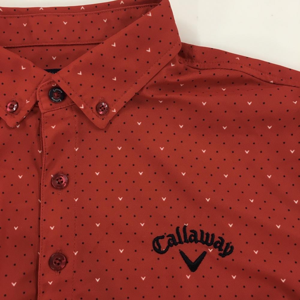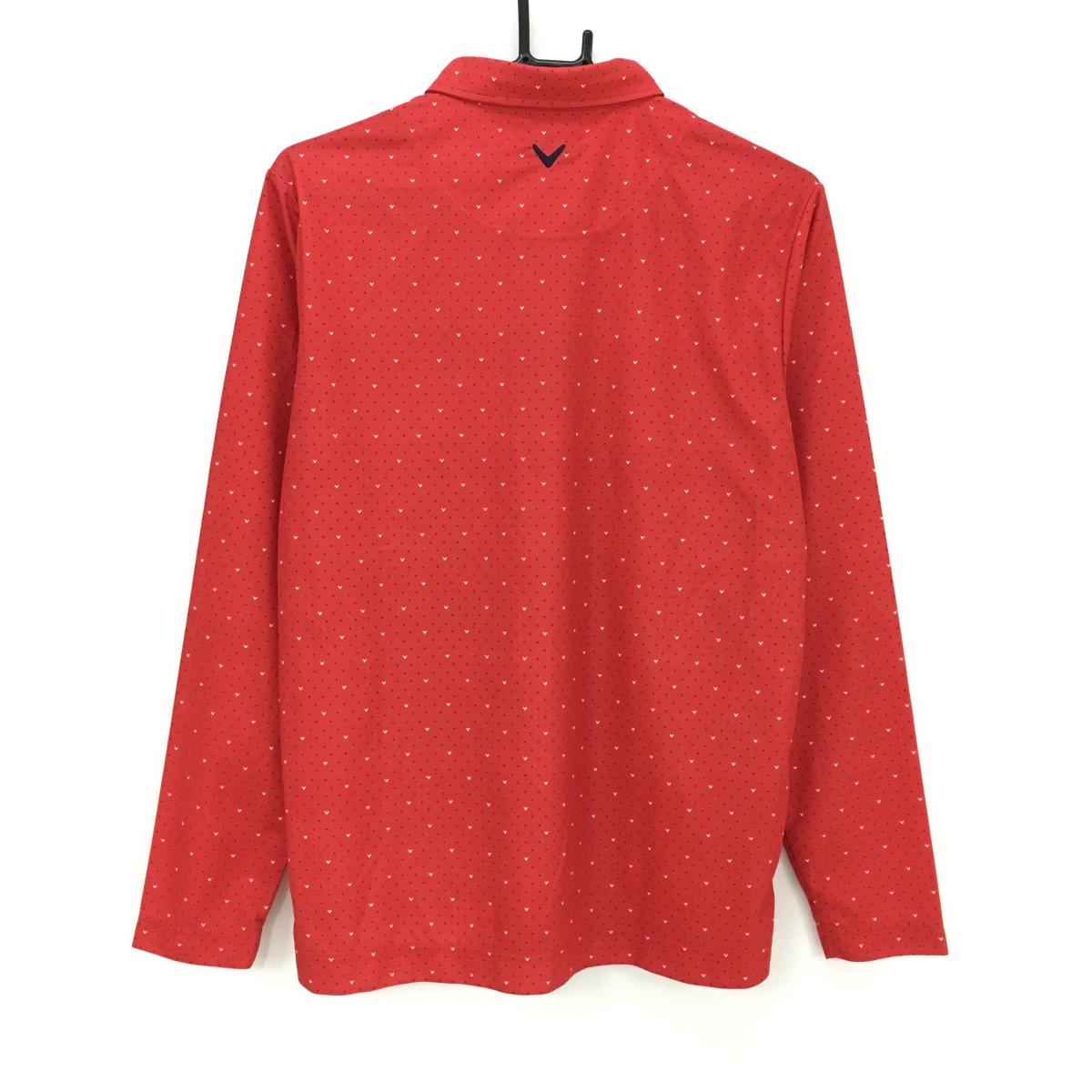 【超美品】キャロウェイ 長袖ポロシャツ レッド×ネイビー×白 ドット ボタンダウン メンズ L ゴルフウェア Callaway