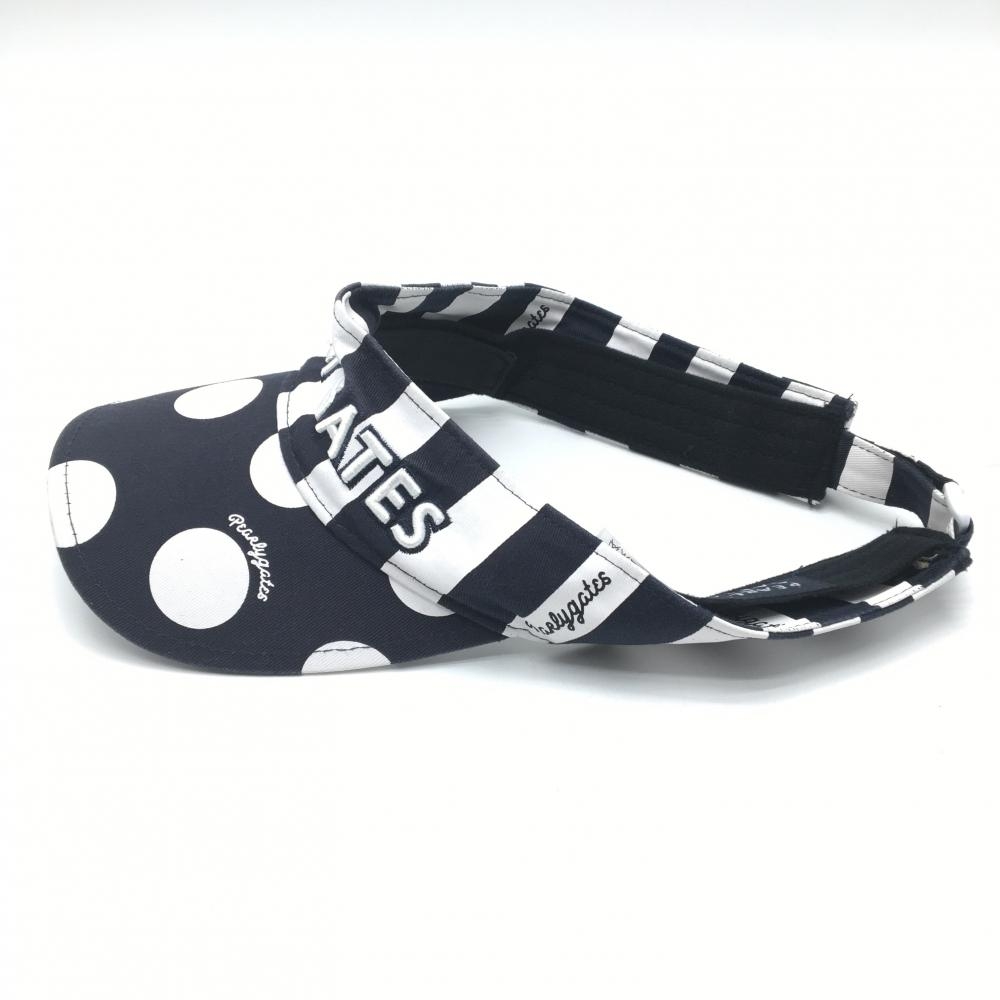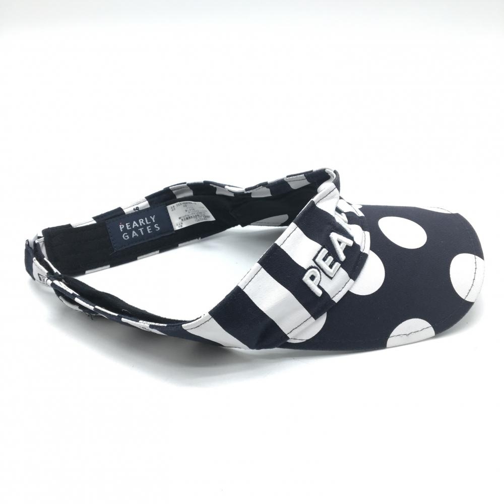 パーリーゲイツ サンバイザー ネイビー×白 ドット ストライプ 汗取りテープ付き FR ゴルフウェア PEARLY GATES