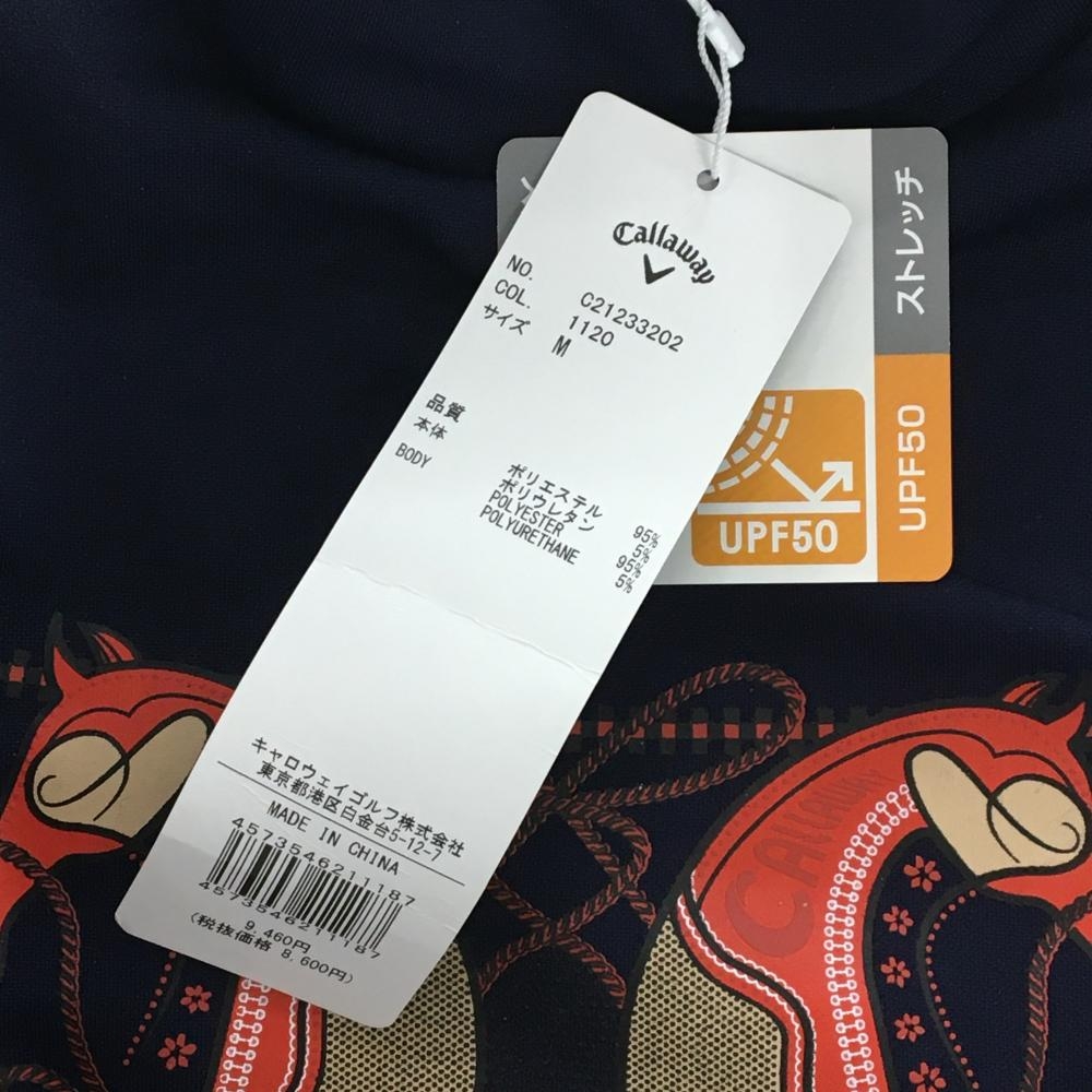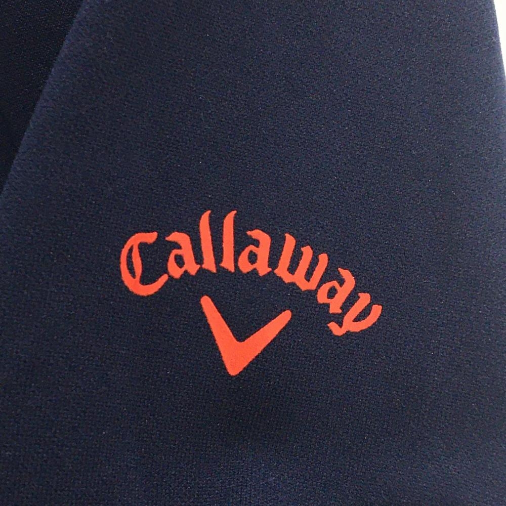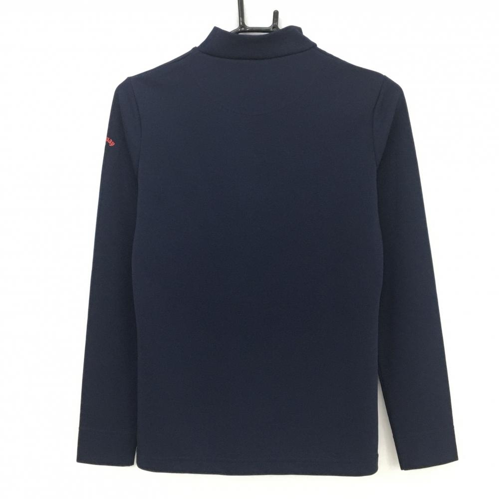 【新品】キャロウェイ 長袖ハイネックシャツ ネイビー×レッド×ベージュ フロントロゴプリント レディース M ゴルフウェア Callaway