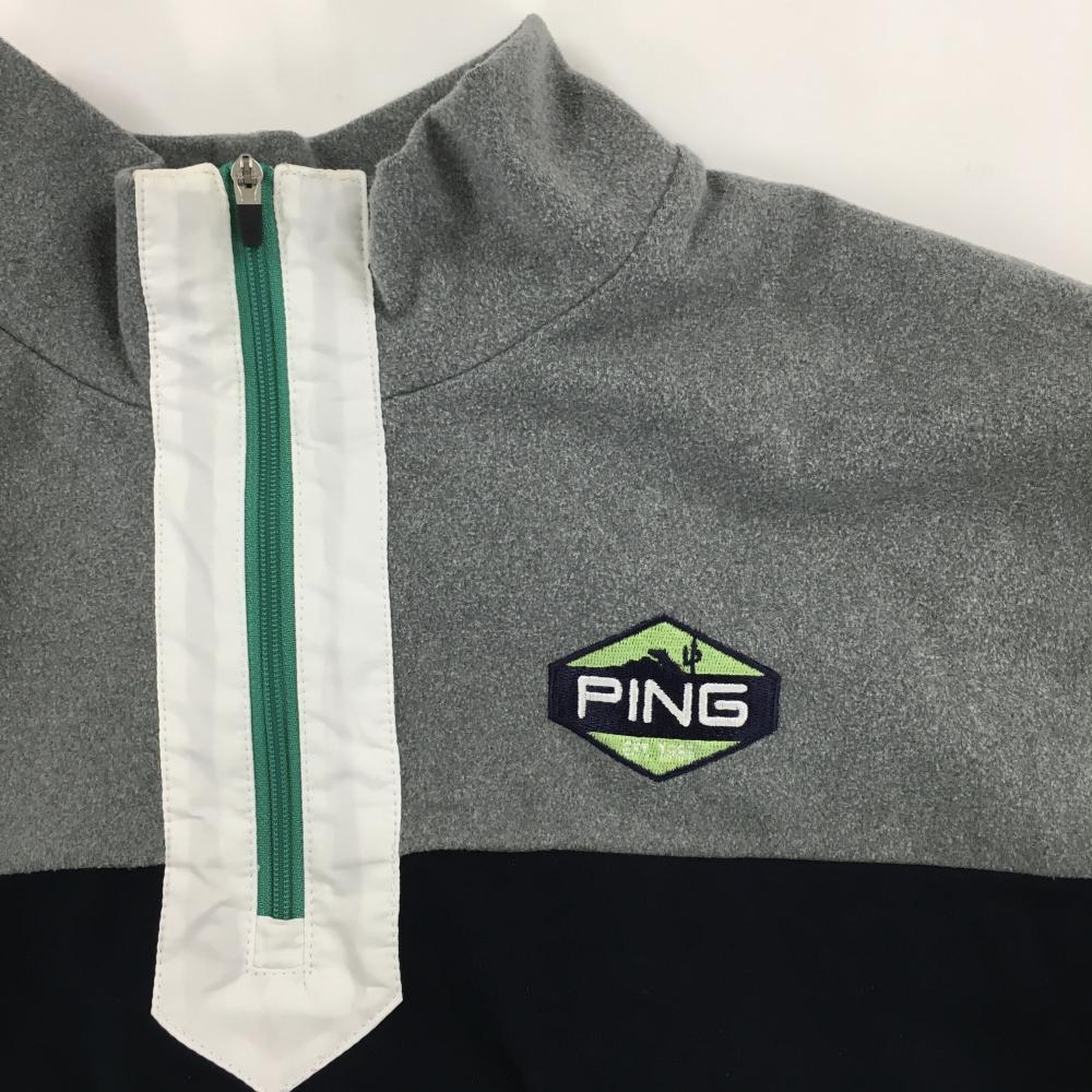 【超美品】ピン ブルゾン ネイビー×グレー 起毛素材 ハーフジップ メンズ 3L ゴルフウェア 大きいサイズ PING