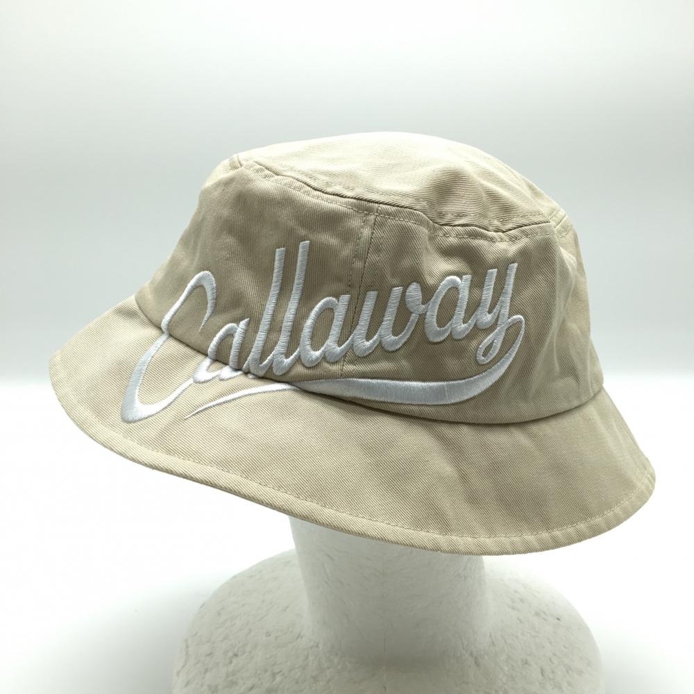 【超美品】キャロウェイ バケットハット ベージュ×白 ロゴ刺しゅう コットン100% FR ゴルフウェア 2023年モデル Callaway