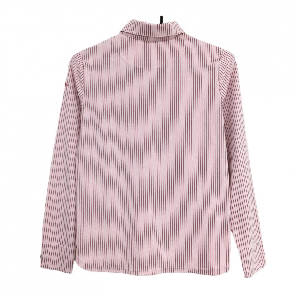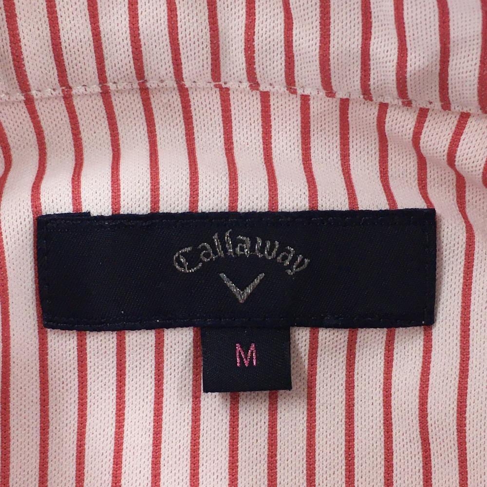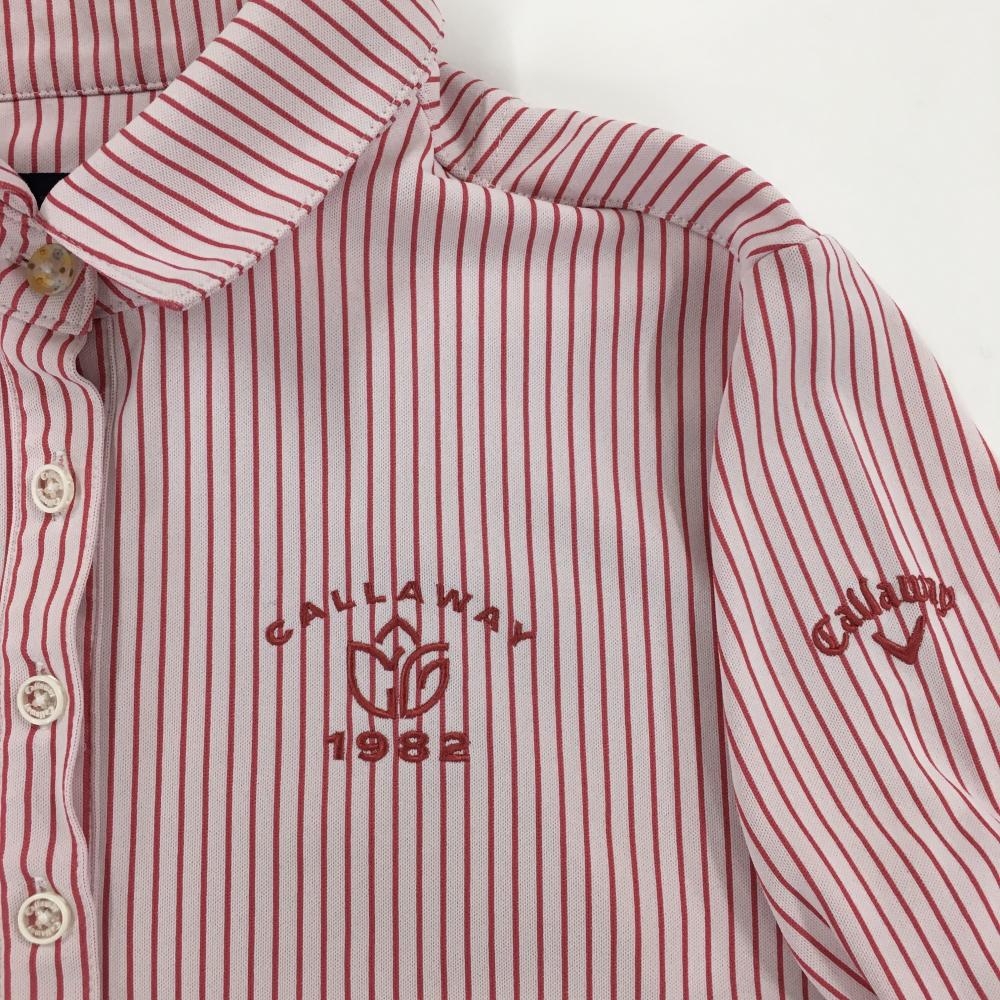 【超美品】キャロウェイ 長袖ポロシャツ 白×ピンク ストライプ ロゴ刺しゅう レディース M ゴルフウェア Callaway