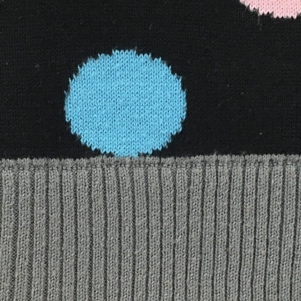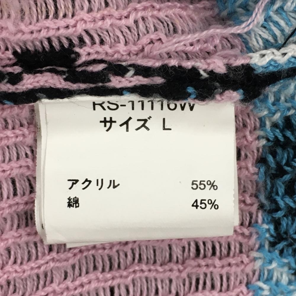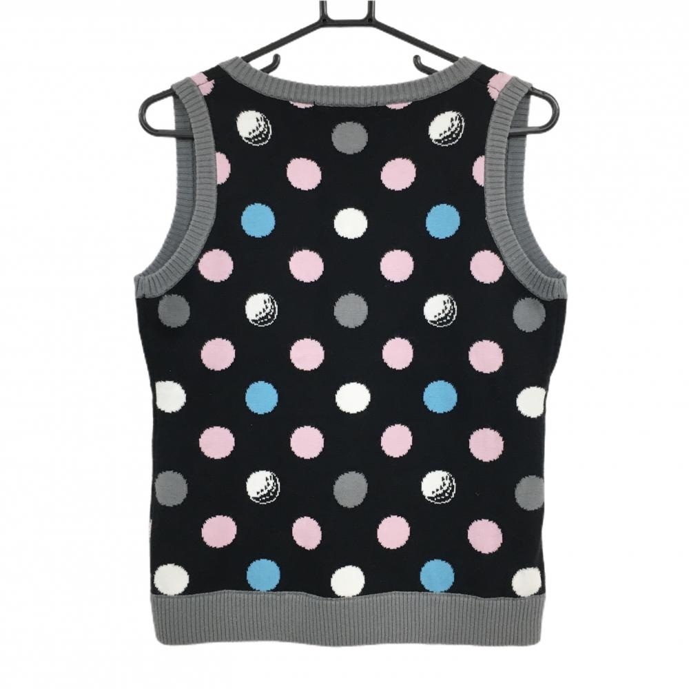 【美品】ラッセルノ ニットベスト 黒×グレー×ピンク ドット レディース L ゴルフウェア RUSSELUNO