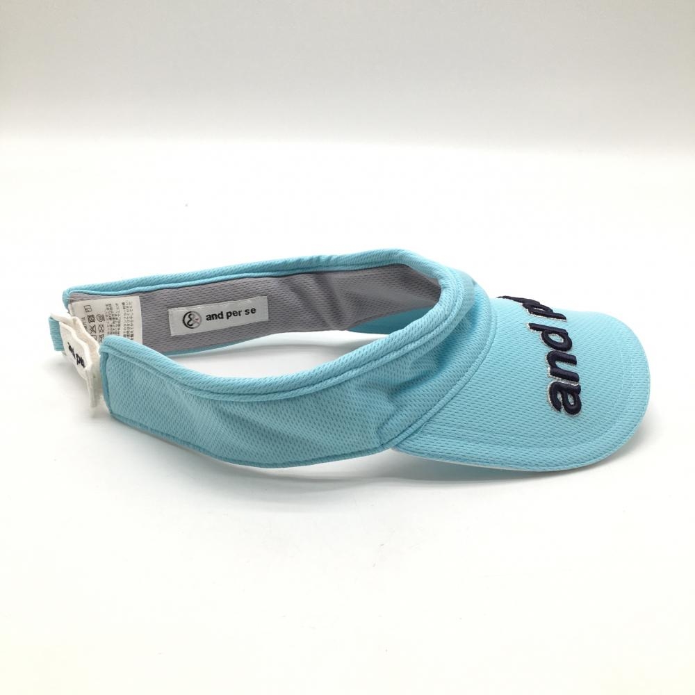 【美品】アンパスィ サンバイザー ライトブルー×ネイビー 立体ロゴ F ゴルフウェア and per se