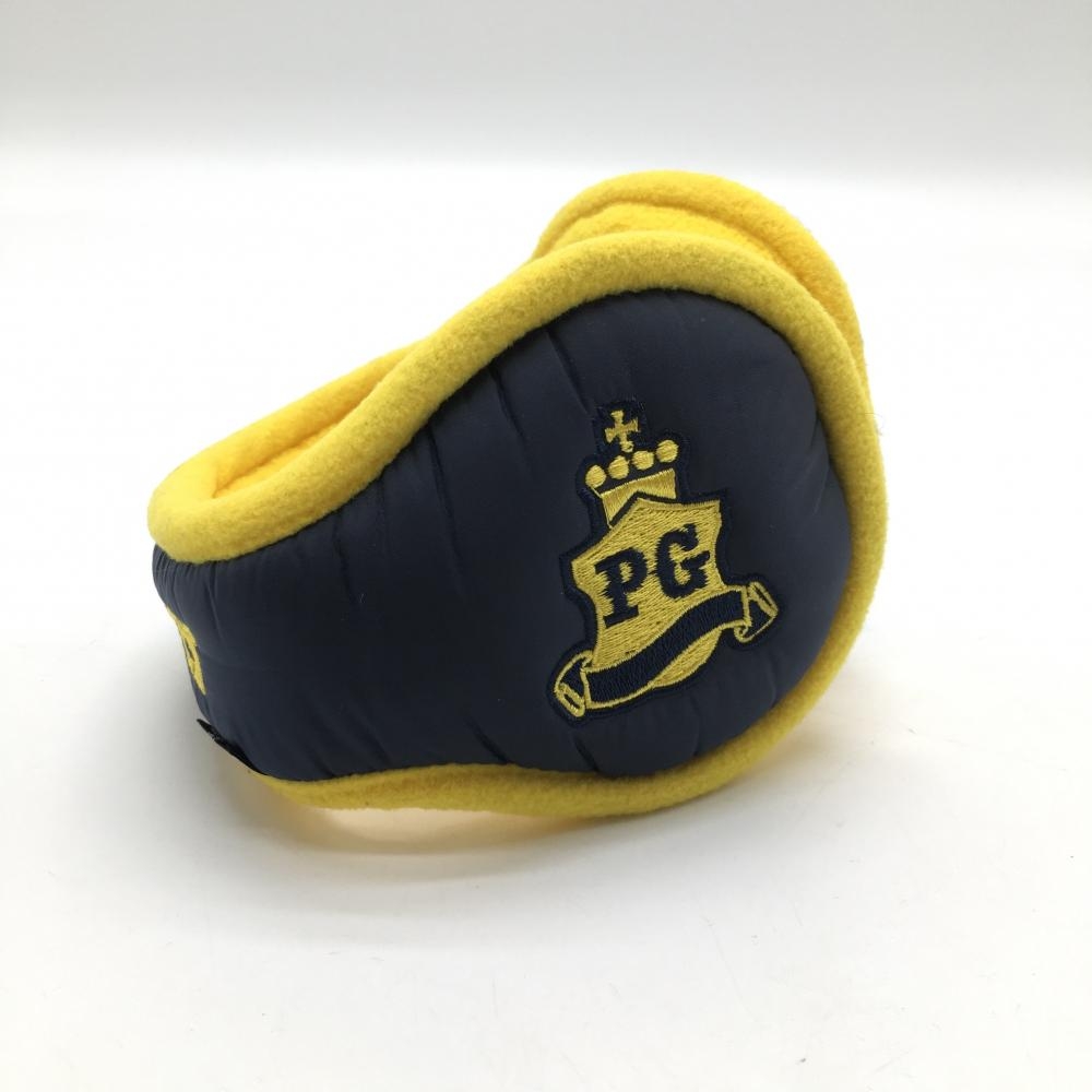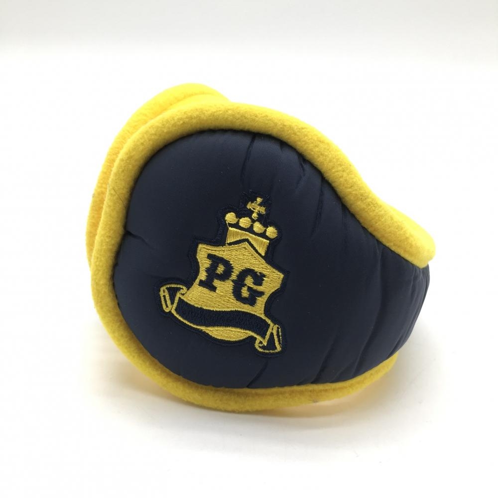 【美品】パーリーゲイツ イヤーマフ ネイビー×イエロー 耳当て 内側フリース ロゴ刺しゅう ゴルフウェア PEARLY GATES