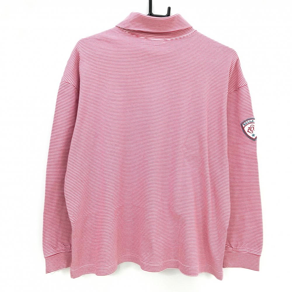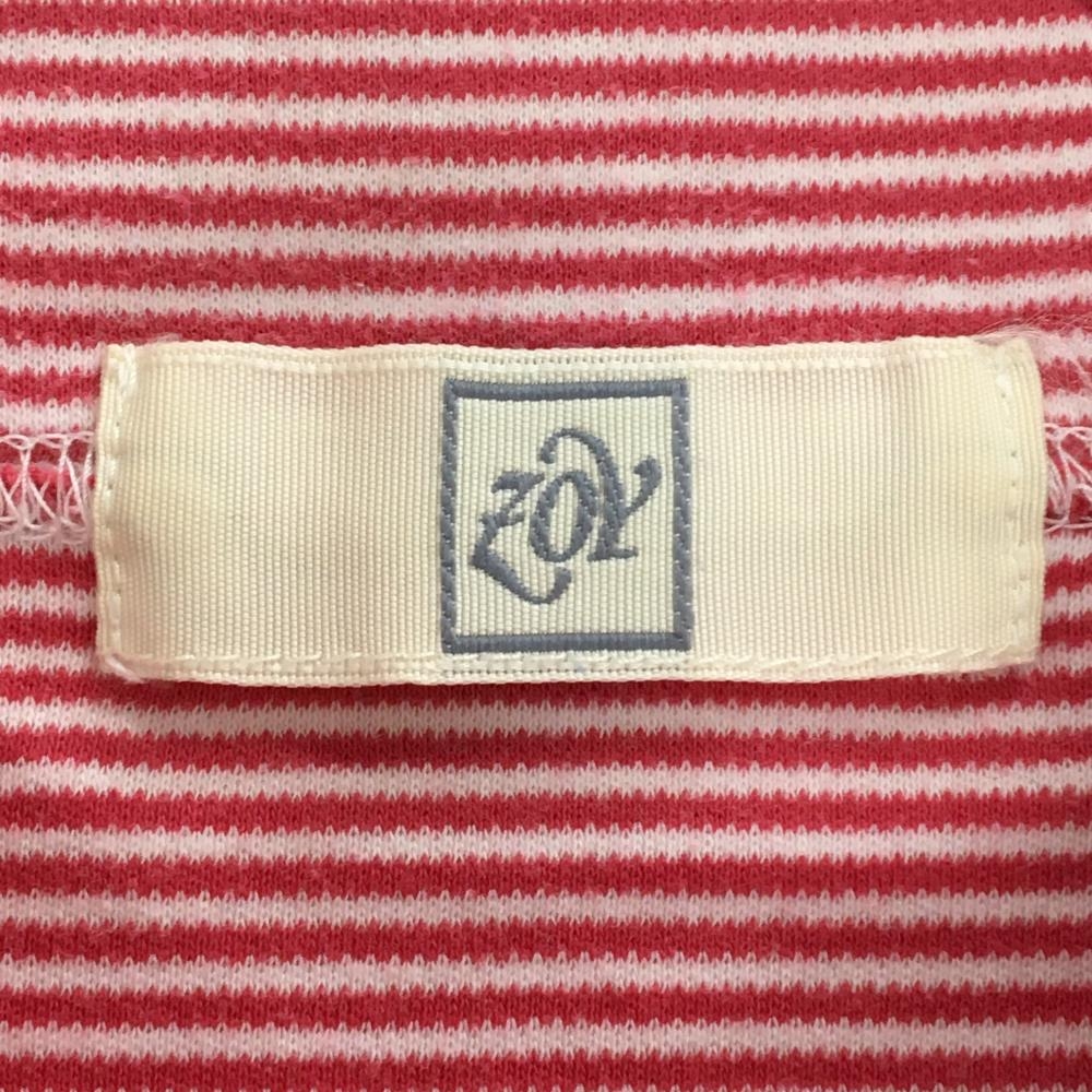 ゾーイ 長袖タートルネックシャツ レッド×白 ボーダー ロゴ刺しゅう メンズ ゴルフウェア ZOY