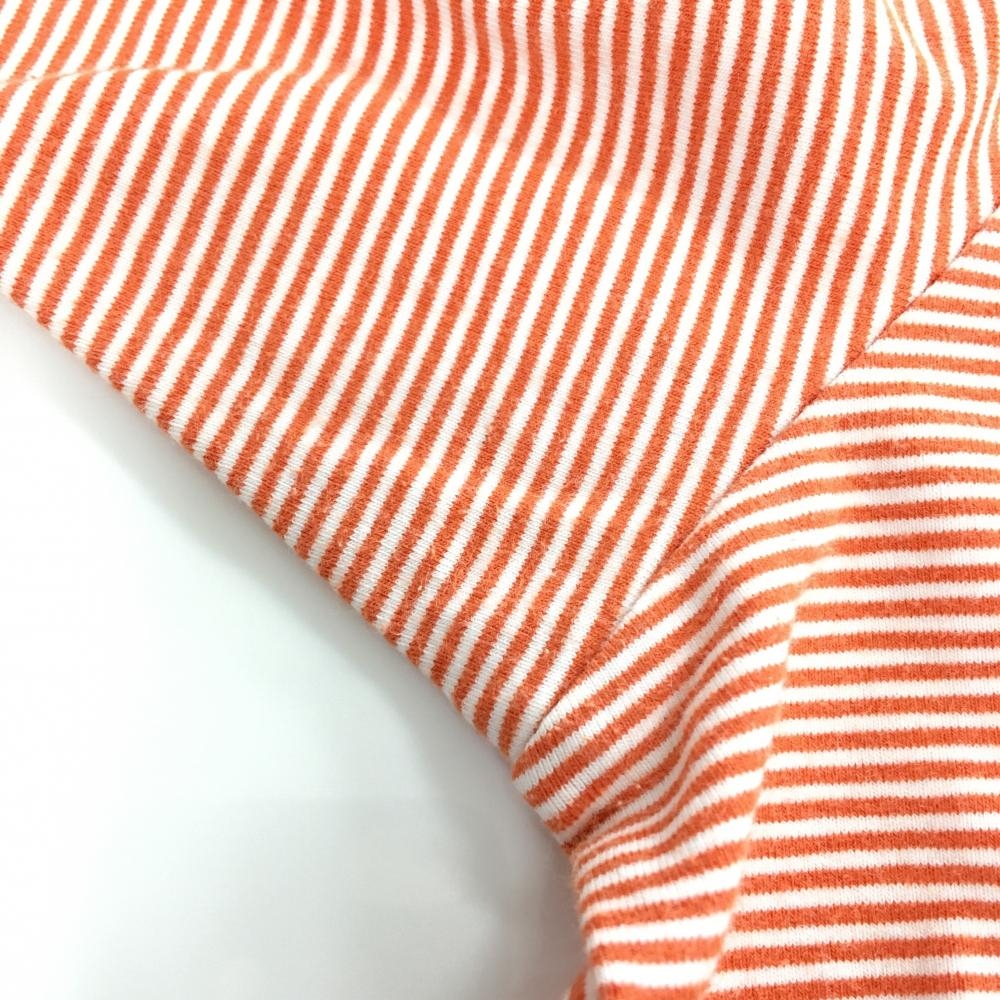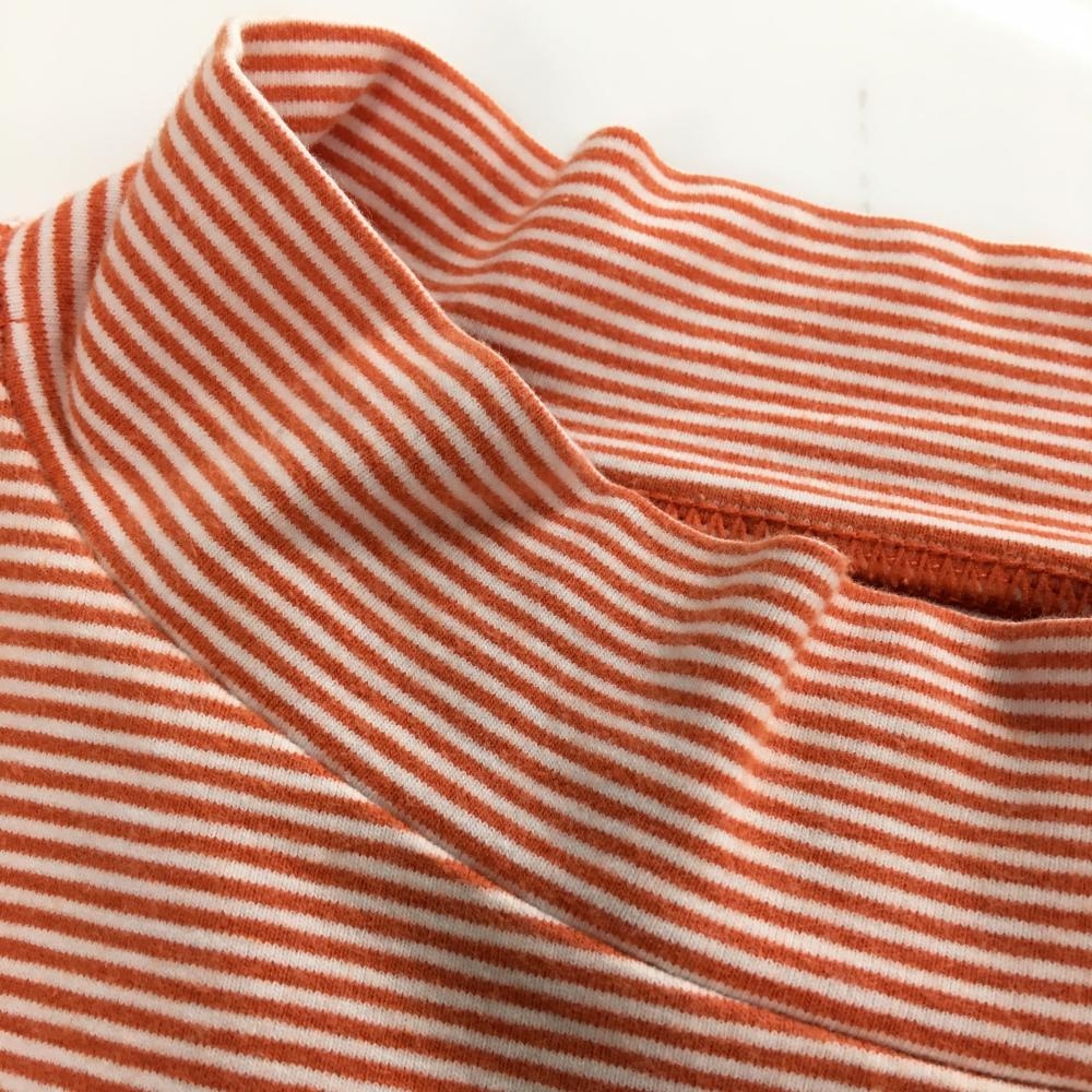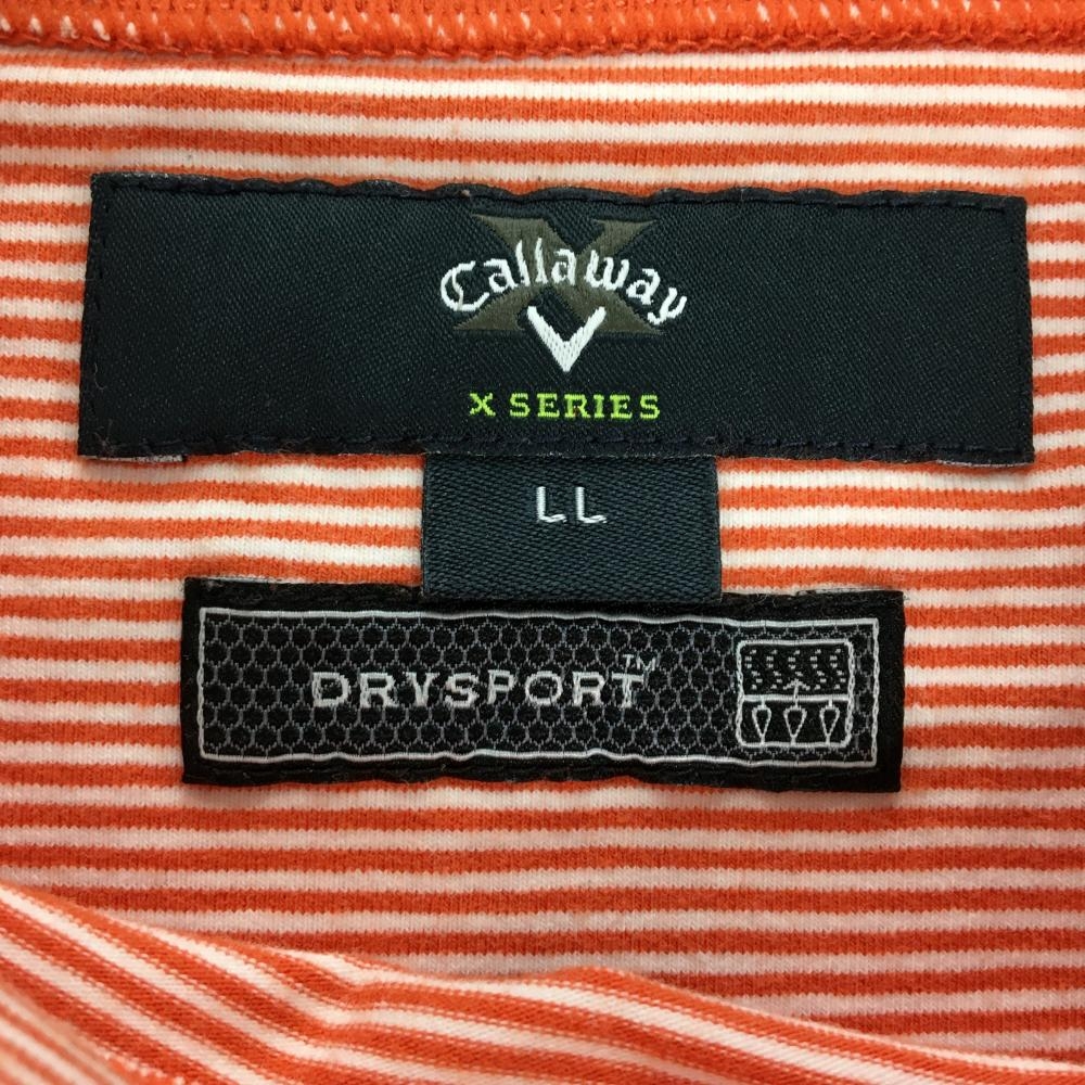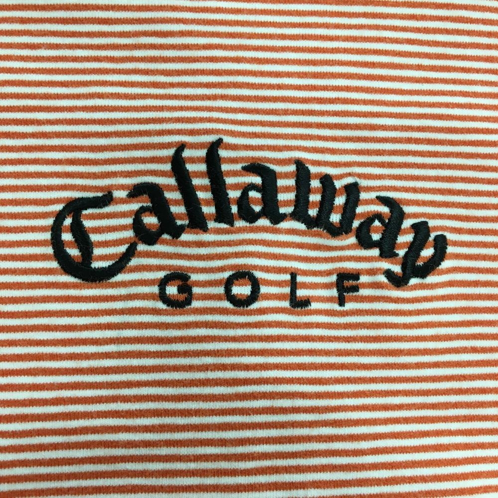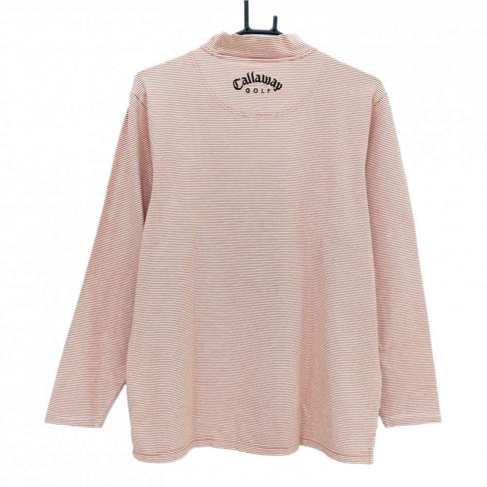 【美品】キャロウェイ 長袖ハイネックシャツ オレンジ×白 ボーダー ロゴ黒 メンズ LL ゴルフウェア Callaway