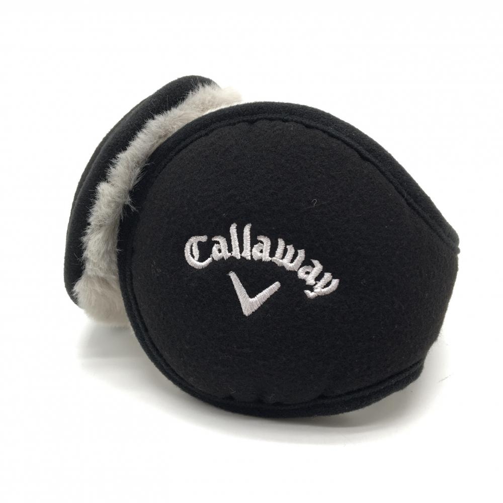 【超美品】キャロウェイ イヤーマフ 黒×グレー 裏地ファー 耳当て ロゴ白 ゴルフウェア Callaway