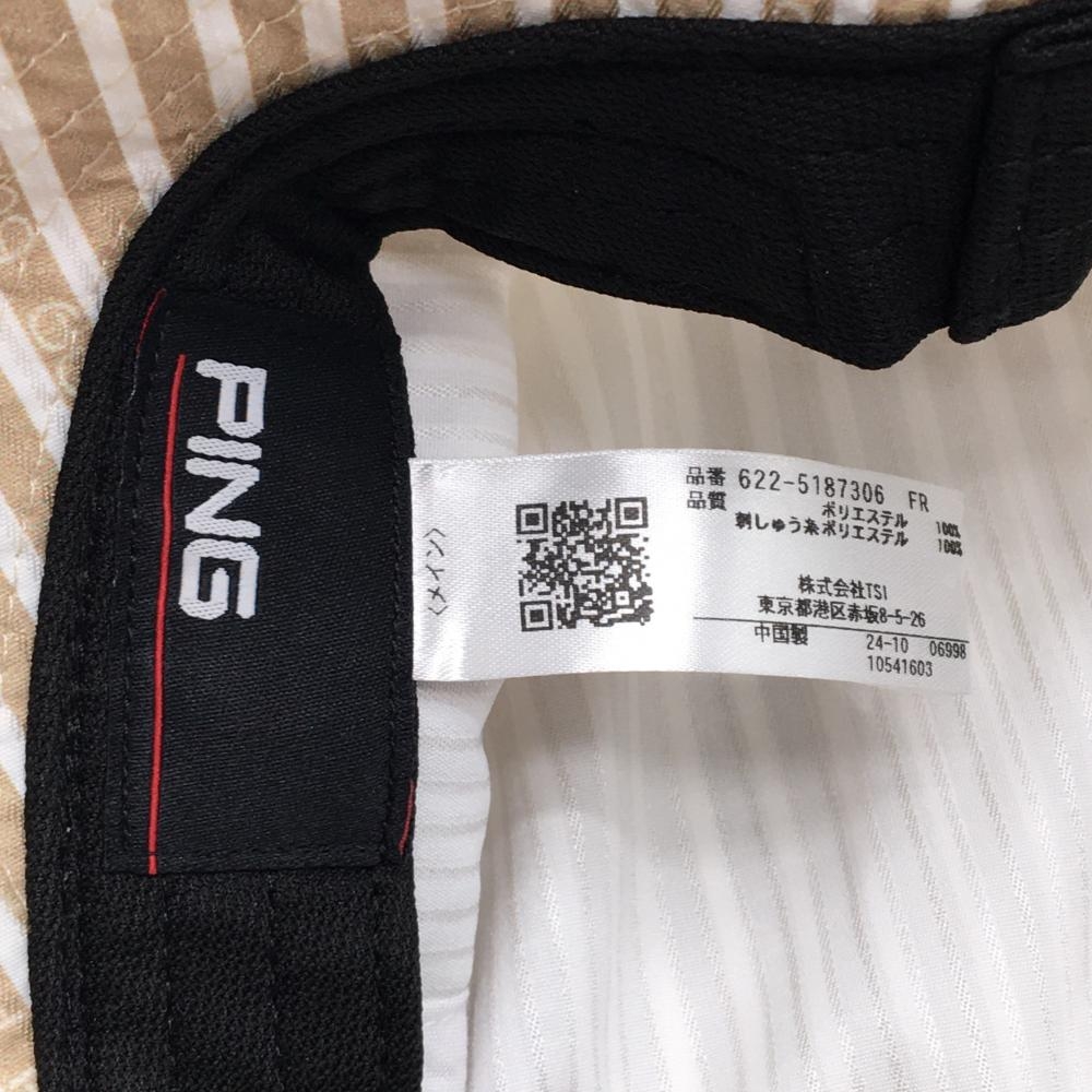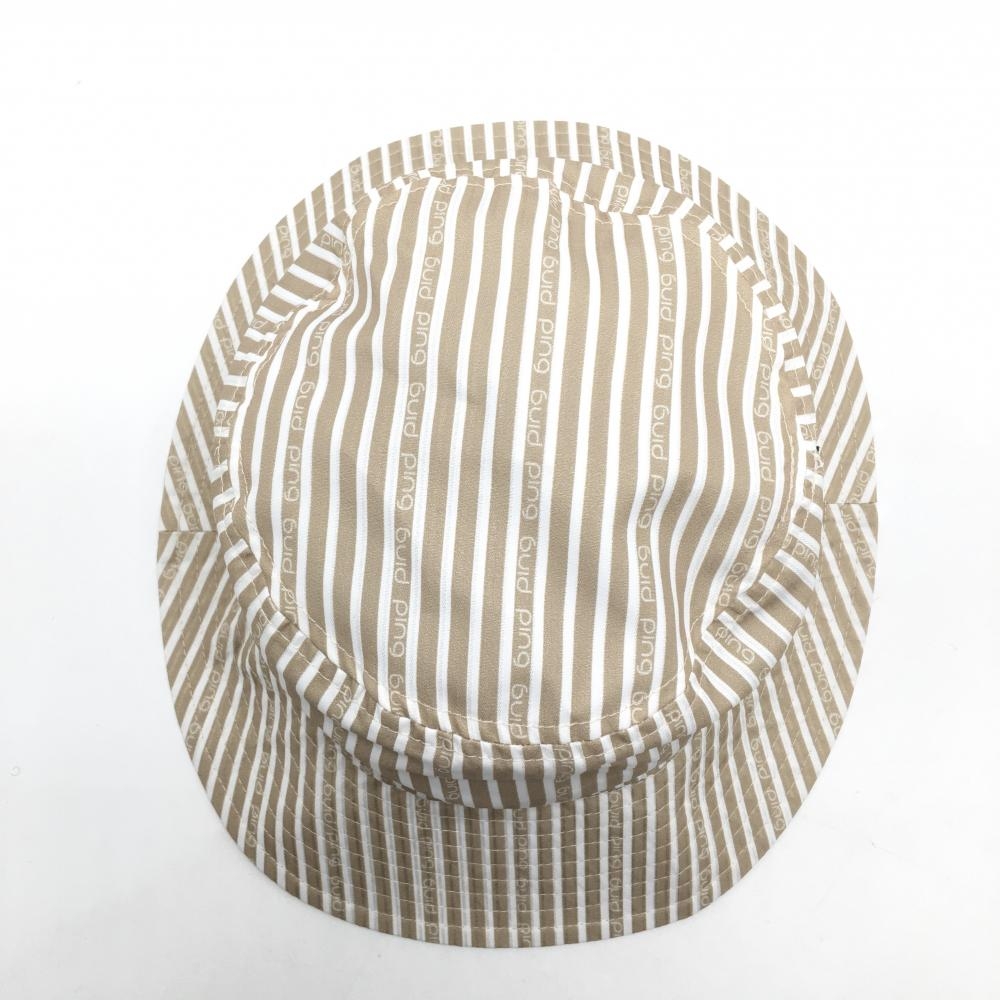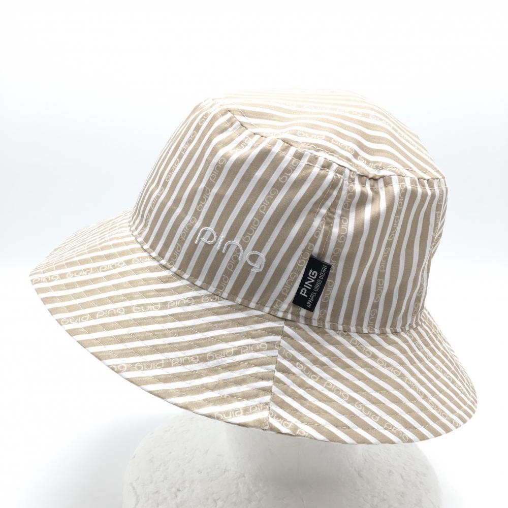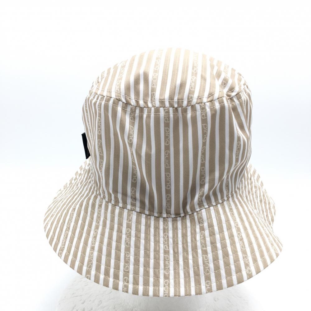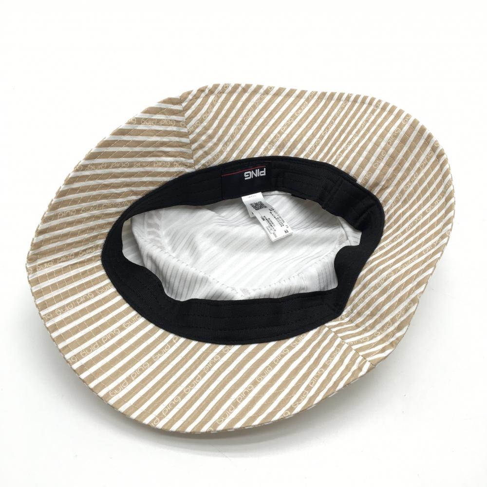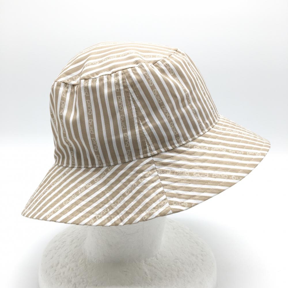 【超美品】ピン バケットハット ベージュ×白 ストライプ FR ゴルフウェア 2025年モデル PING