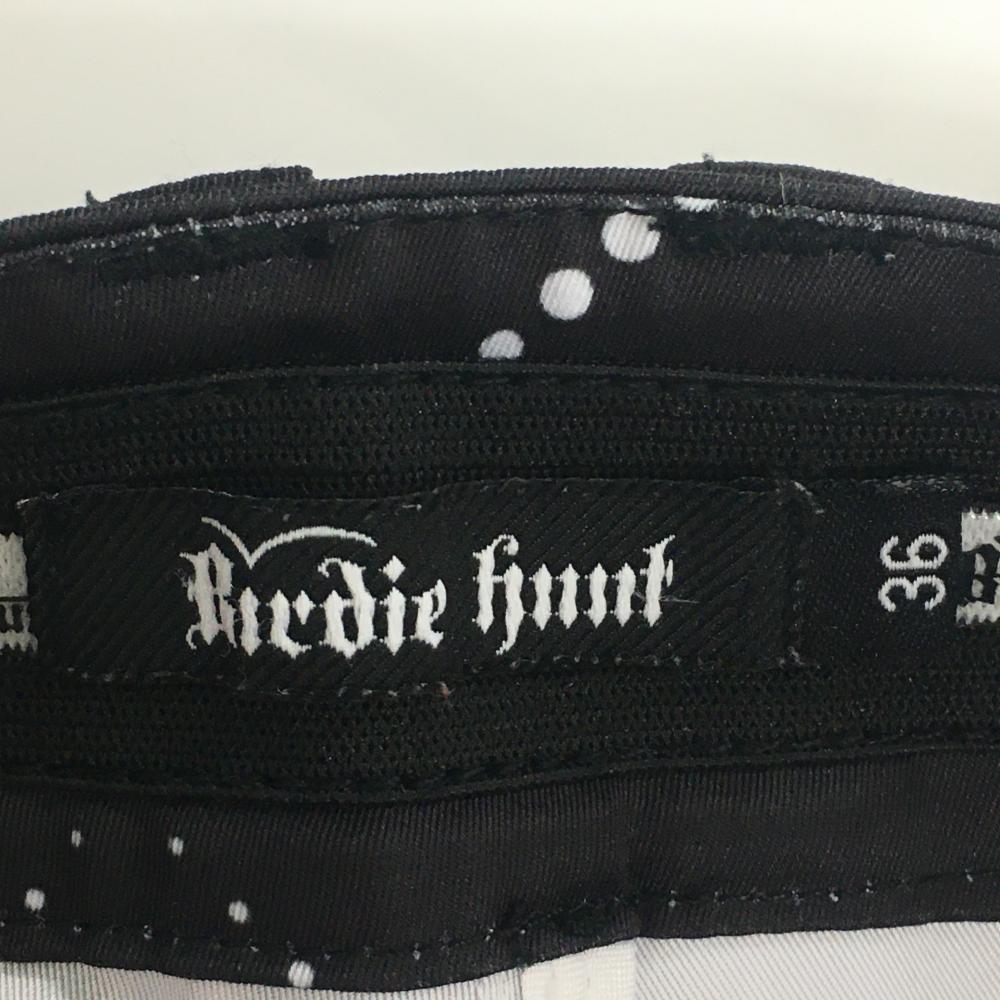 【美品】バーディーハント パンツ 黒×白 斜め格子柄 スカルワッペン メンズ 36(L) ゴルフウェア 大きいサイズ Birdie hunt