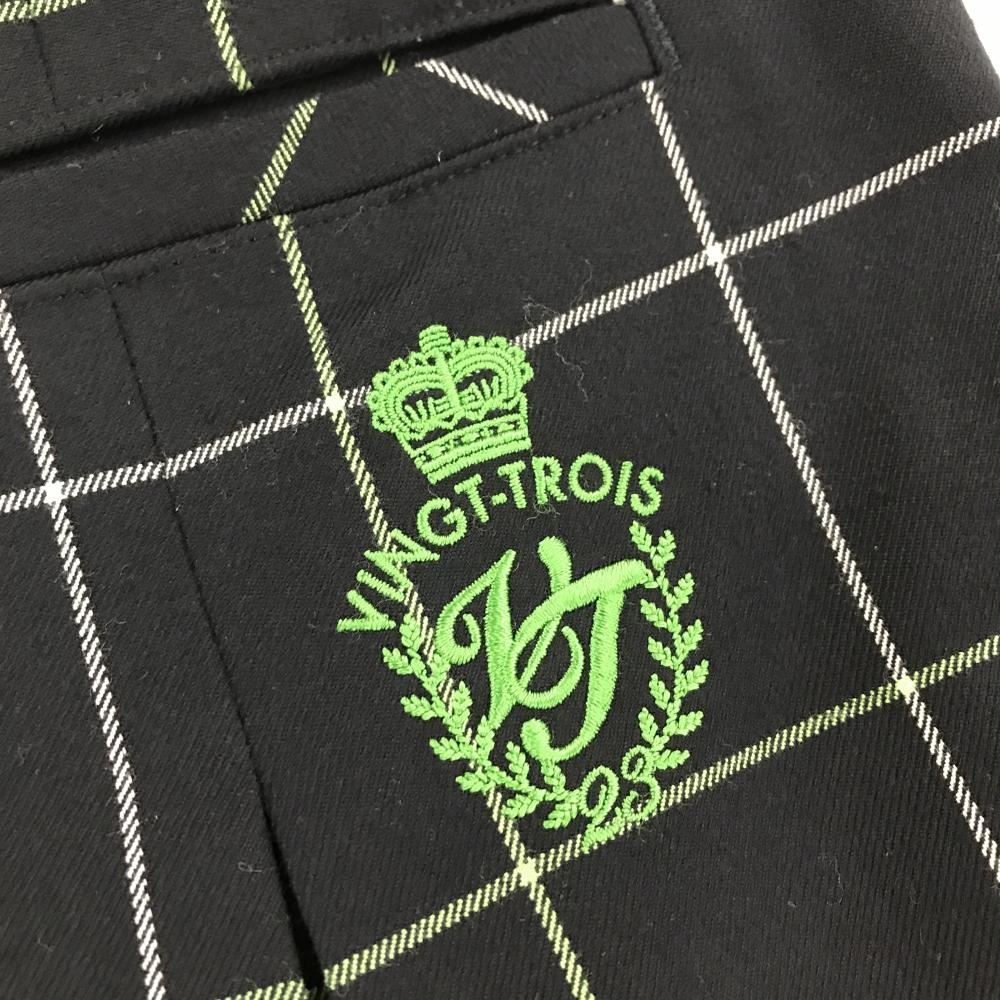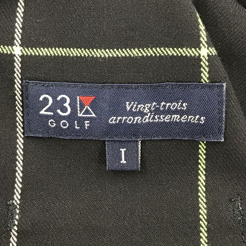 【超美品】23区ゴルフ スカート 黒×白 格子柄 ボックスプリーツ バックロゴ ウエストゴム 調節紐 レディース I(M) ゴルフウェア 23区