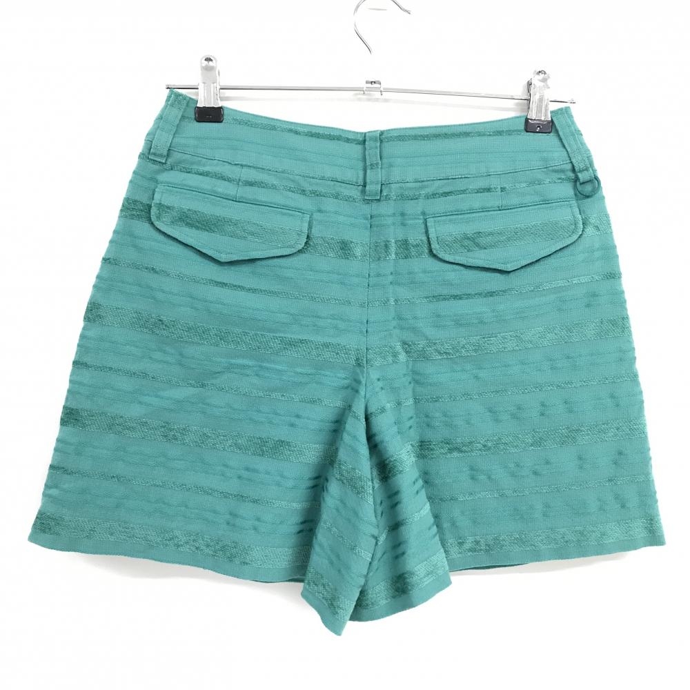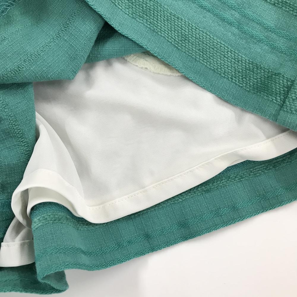 【超美品】23区ゴルフ キュロットスカート グリーン系 ボーダー調 ラインストーンロゴ 裏地付き レディース 64 ゴルフウェア 23区