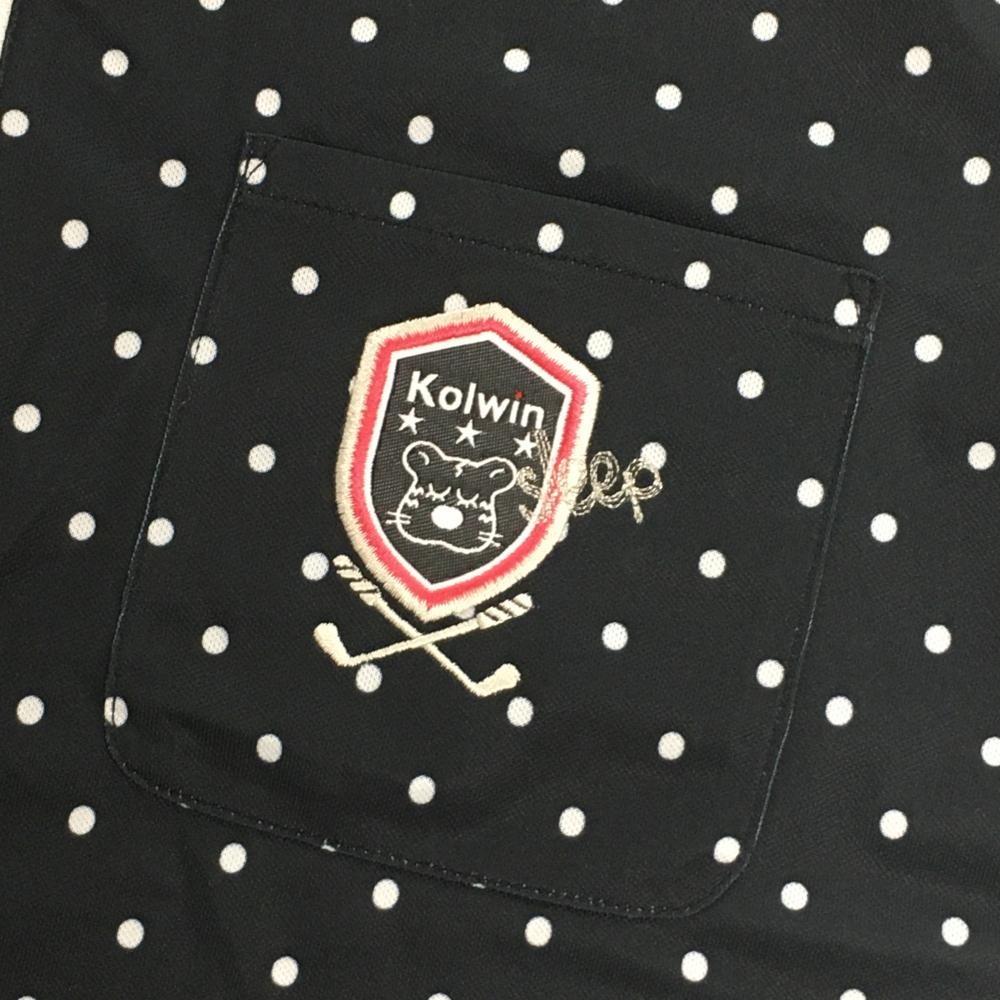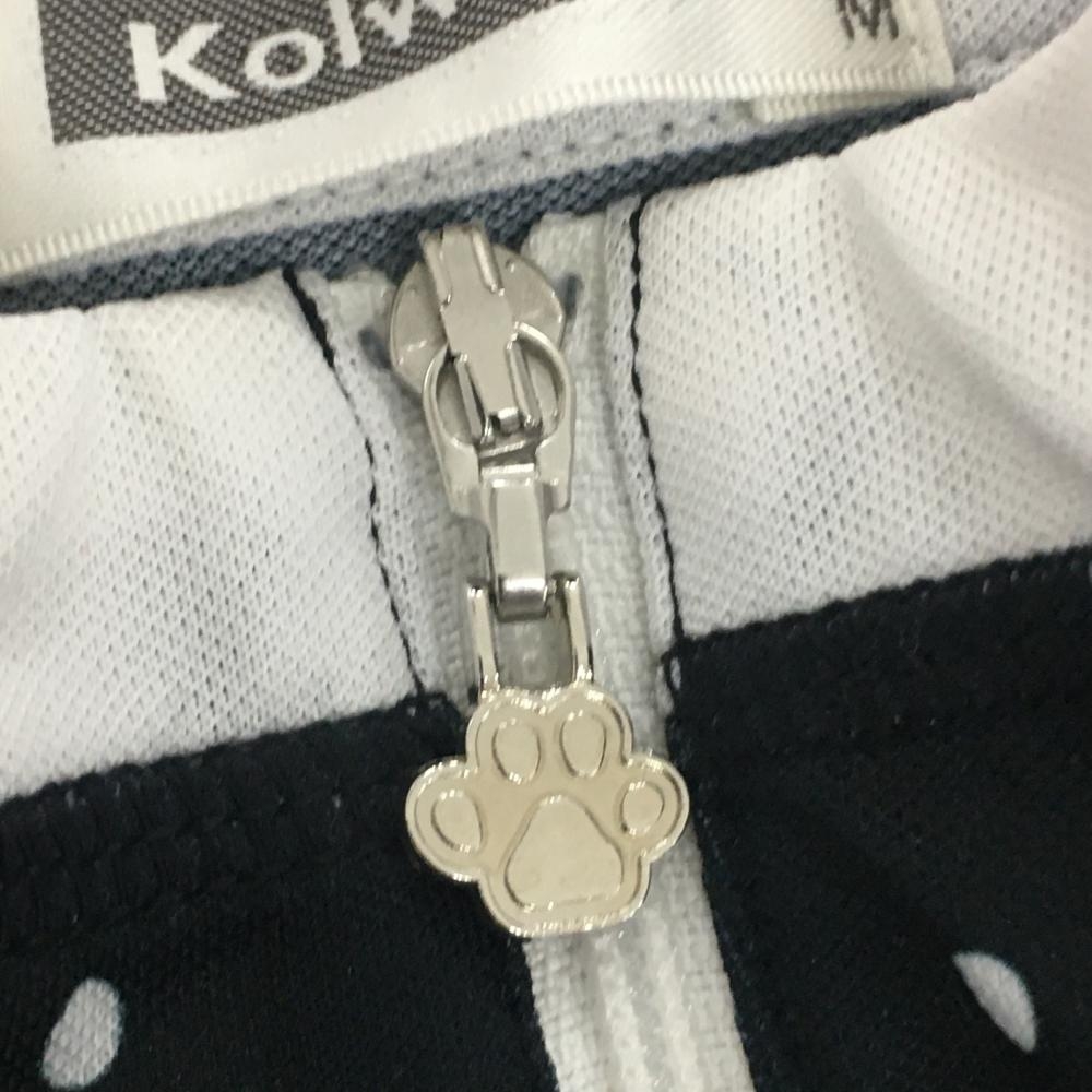 【美品】コルウィン 長袖ハイネックシャツ 黒×白 ドット ハーフジップ 一部メッシュ レディース M ゴルフウェア Kolwin