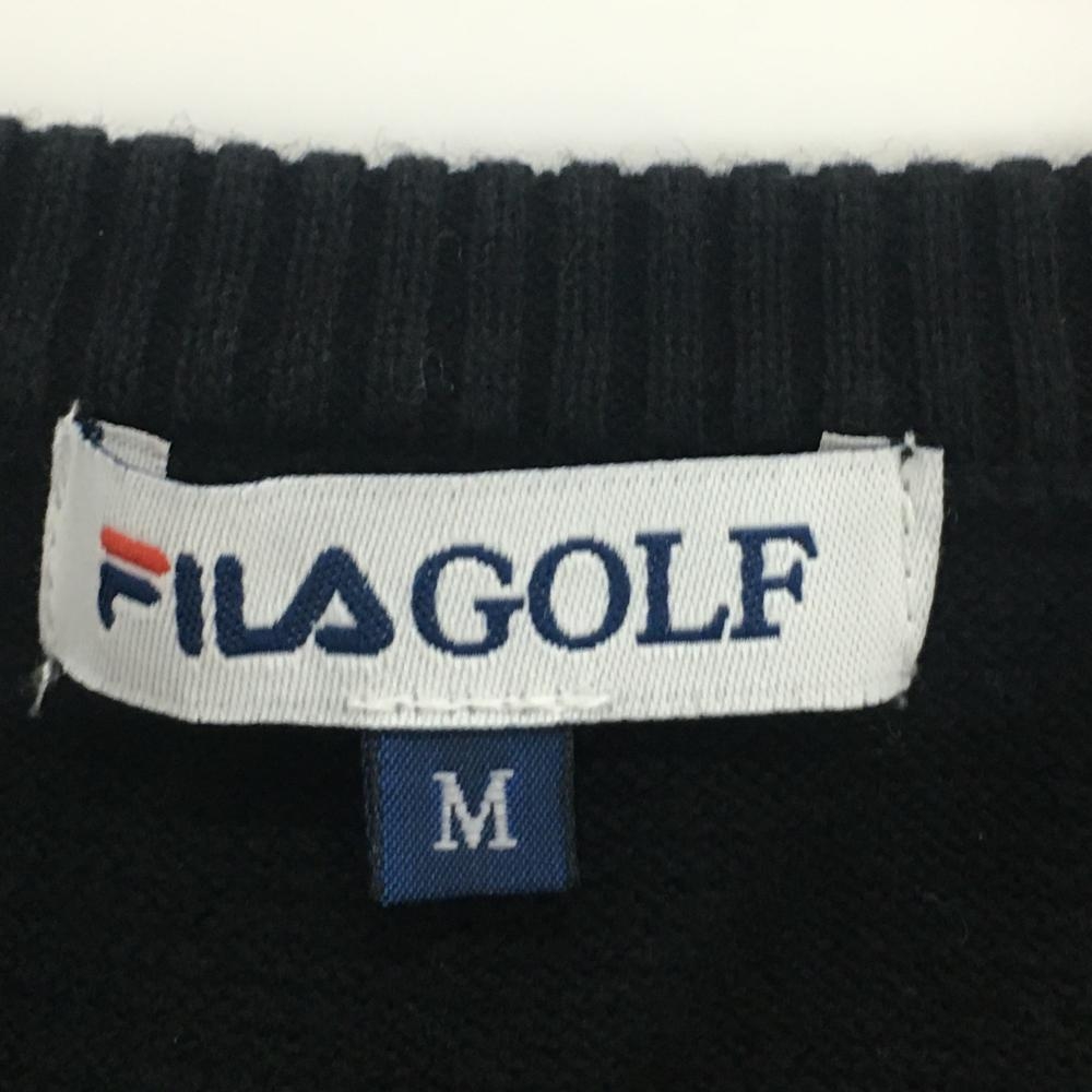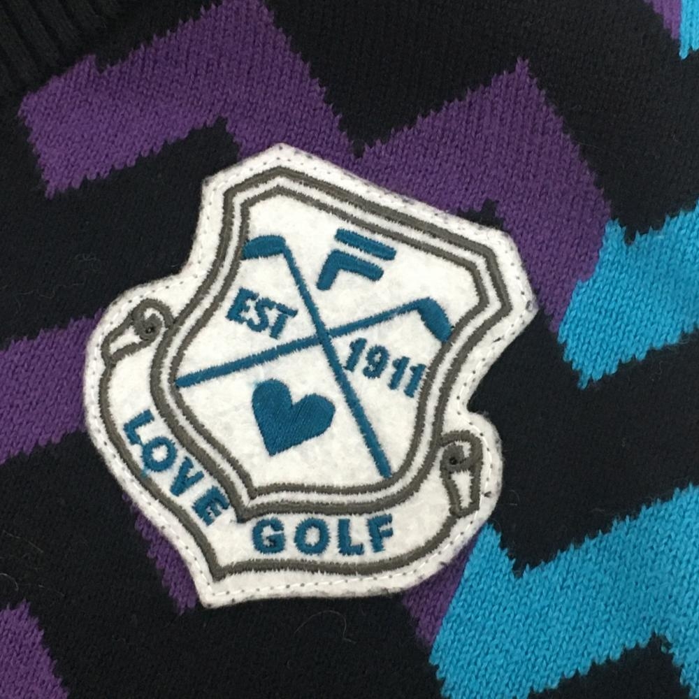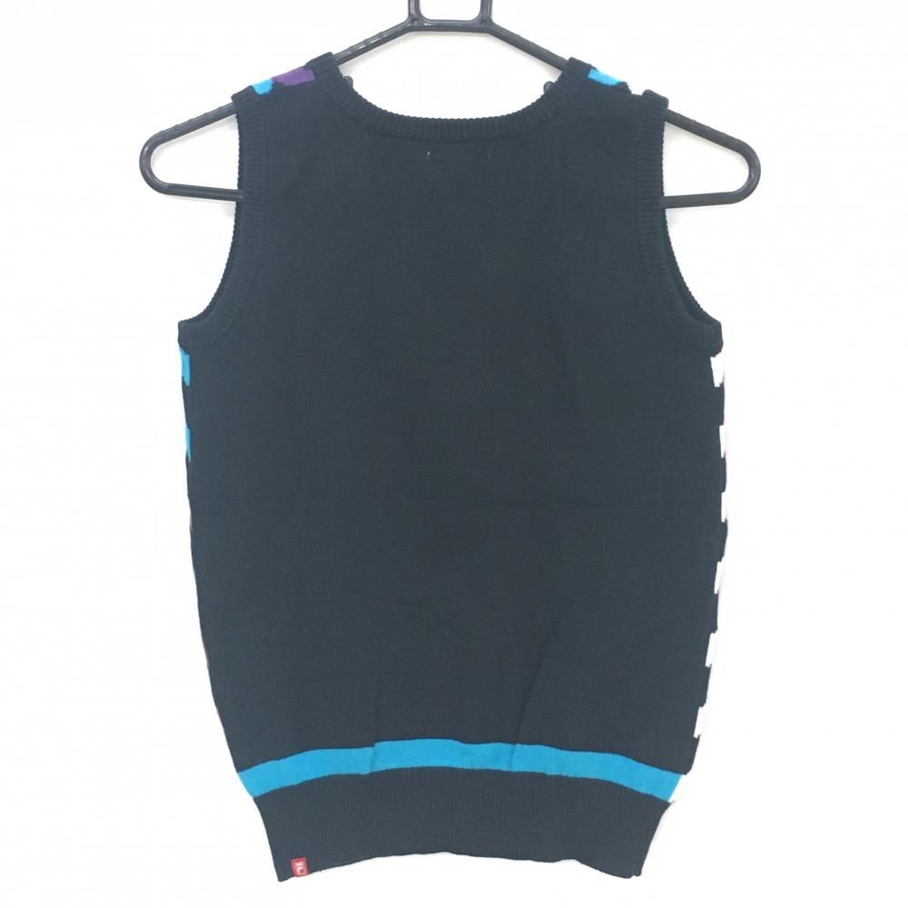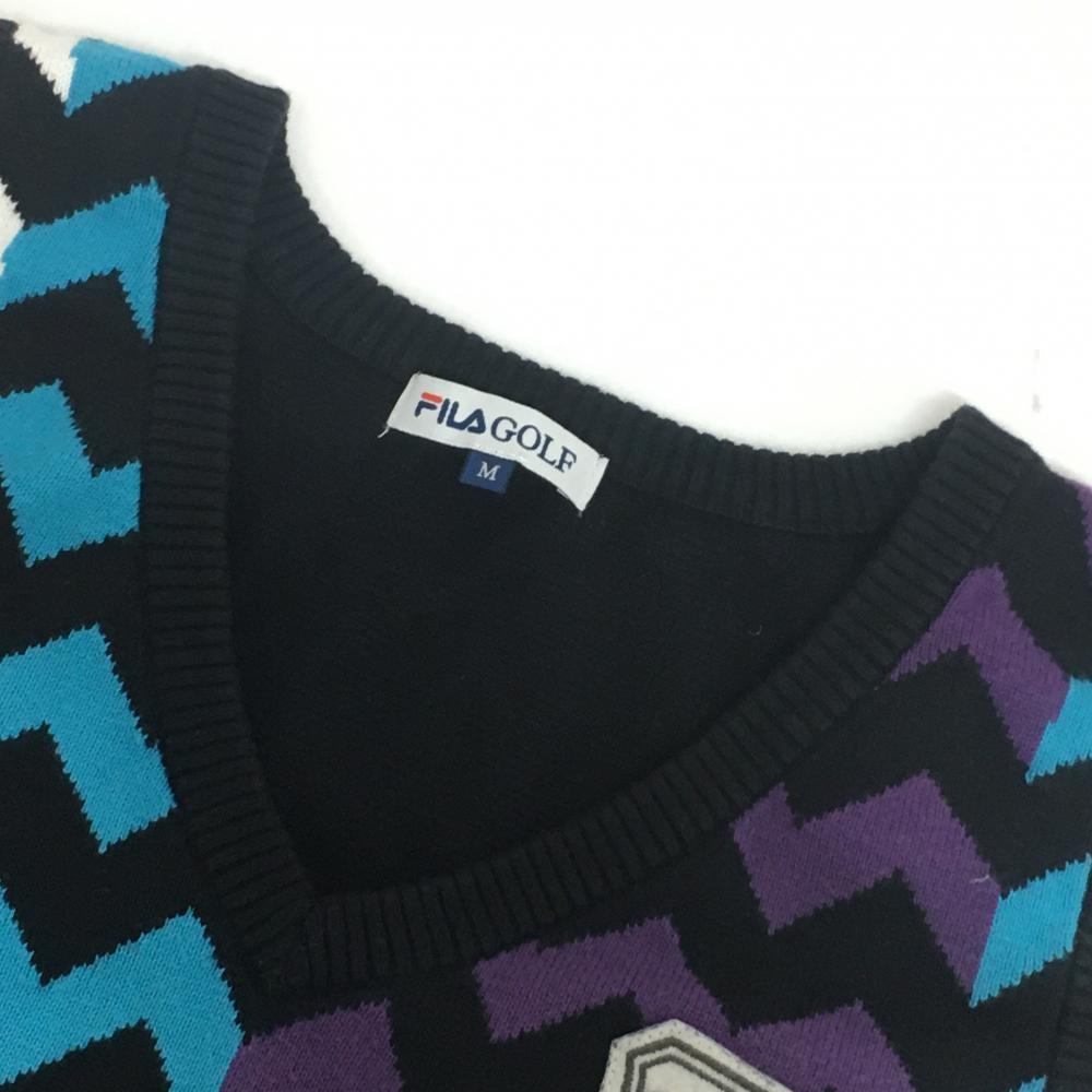 【美品】フィラゴルフ ニットベスト 黒×パープル×ブルー Vネック ギザギザ柄 レディース M ゴルフウェア FILA GOLF