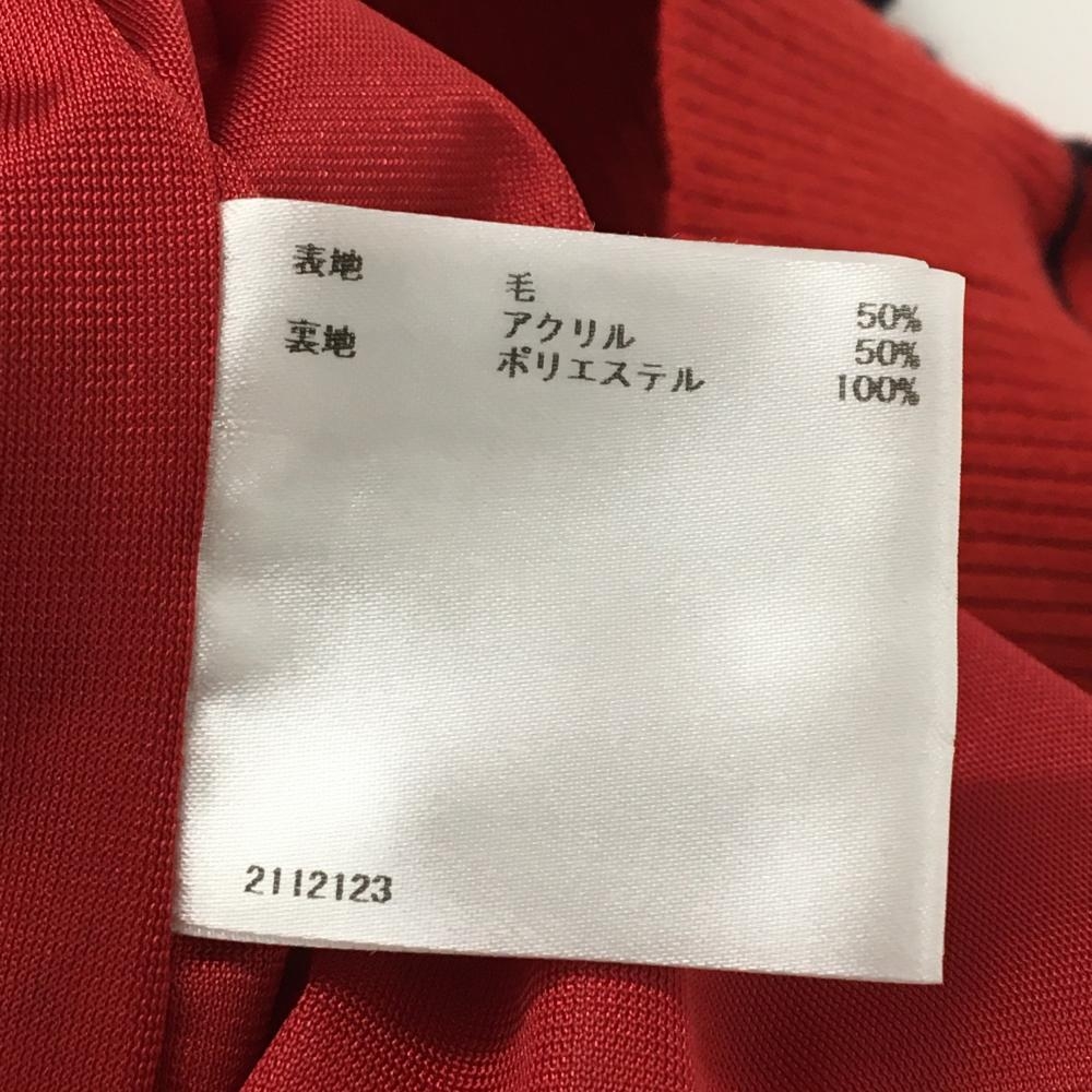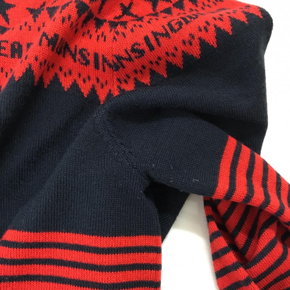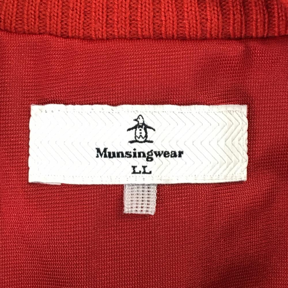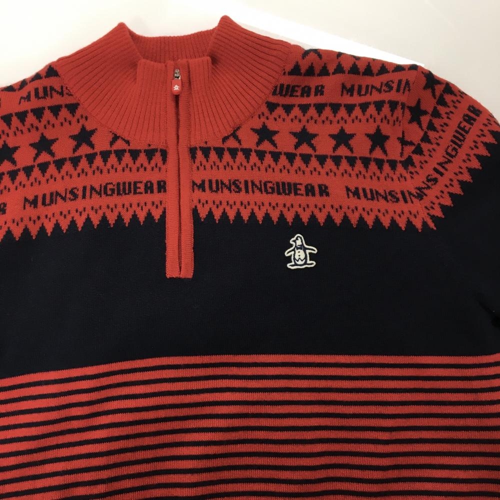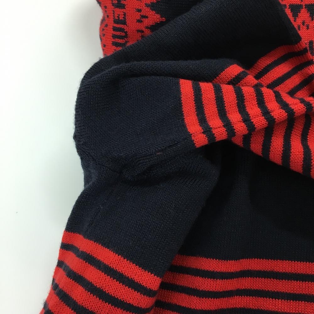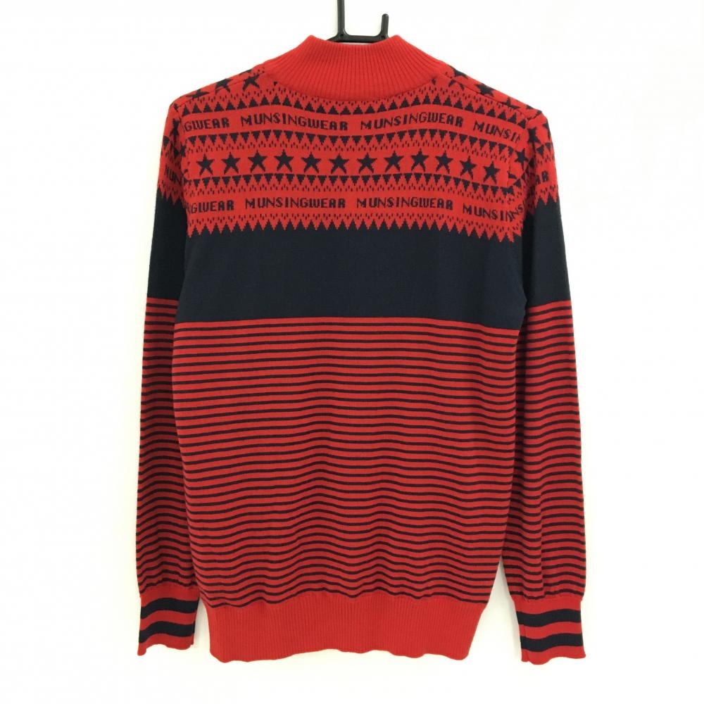 【美品】マンシングウェア ハイネックセーター レッド×ネイビー 下部ボーダー ハーフジップ レディース LL ゴルフウェア Munsingwear