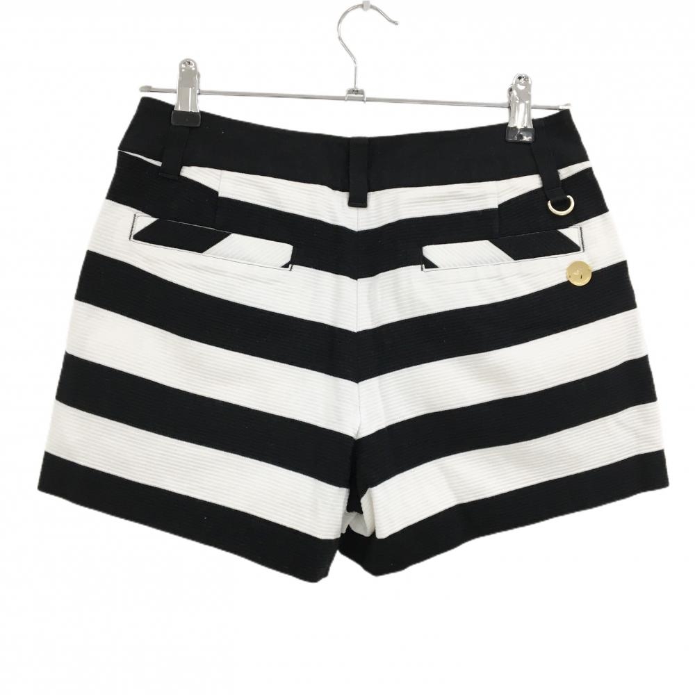 【美品】サマンサタバサNo.7 ショートパンツ 黒×白 ボーダー ストレッチ 裏地付 レディース 38(M) ゴルフウェア Samantha Thavasa