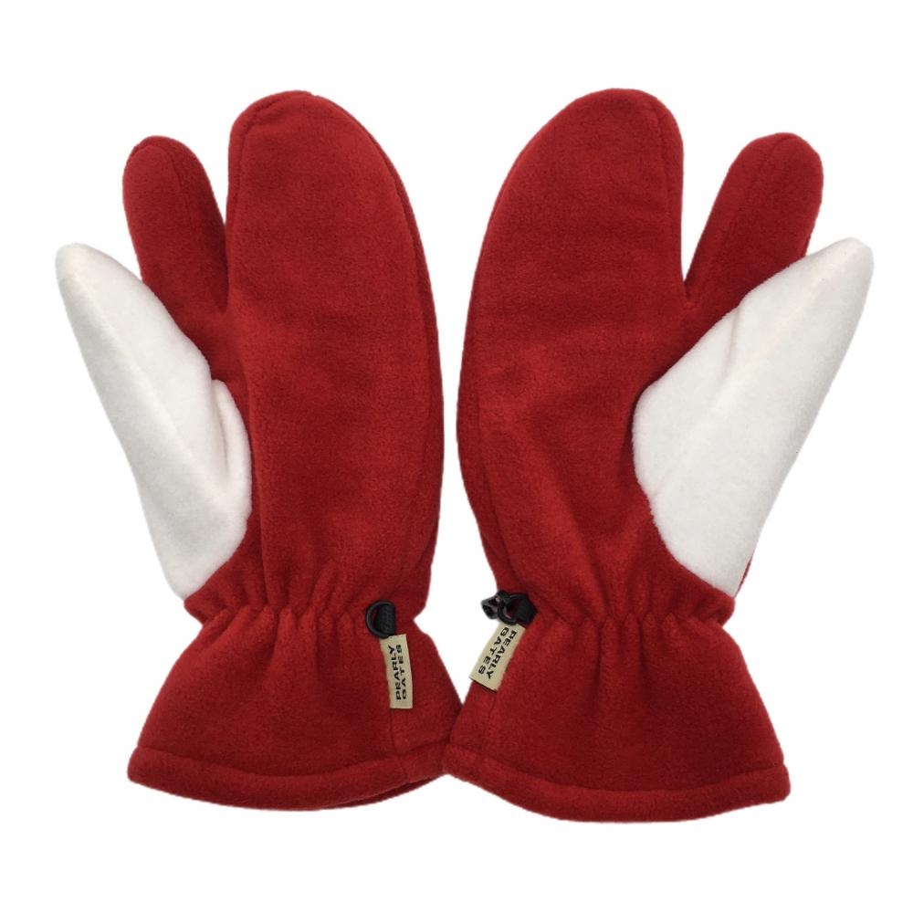 【美品】パーリーゲイツ 手袋 レッド×白 ロゴ刺しゅう ミトングローブ レディース L ゴルフウェア PEARLY GATES