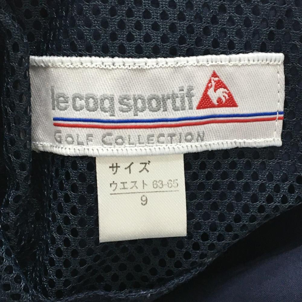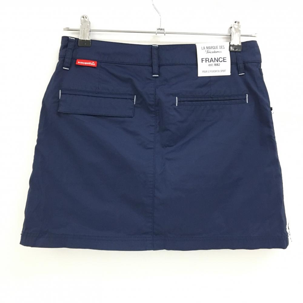 【超美品】ルコックゴルフ スカート ネイビー×白 サイドライン ナイロン混 レディース 9 ゴルフウェア le coq sportif