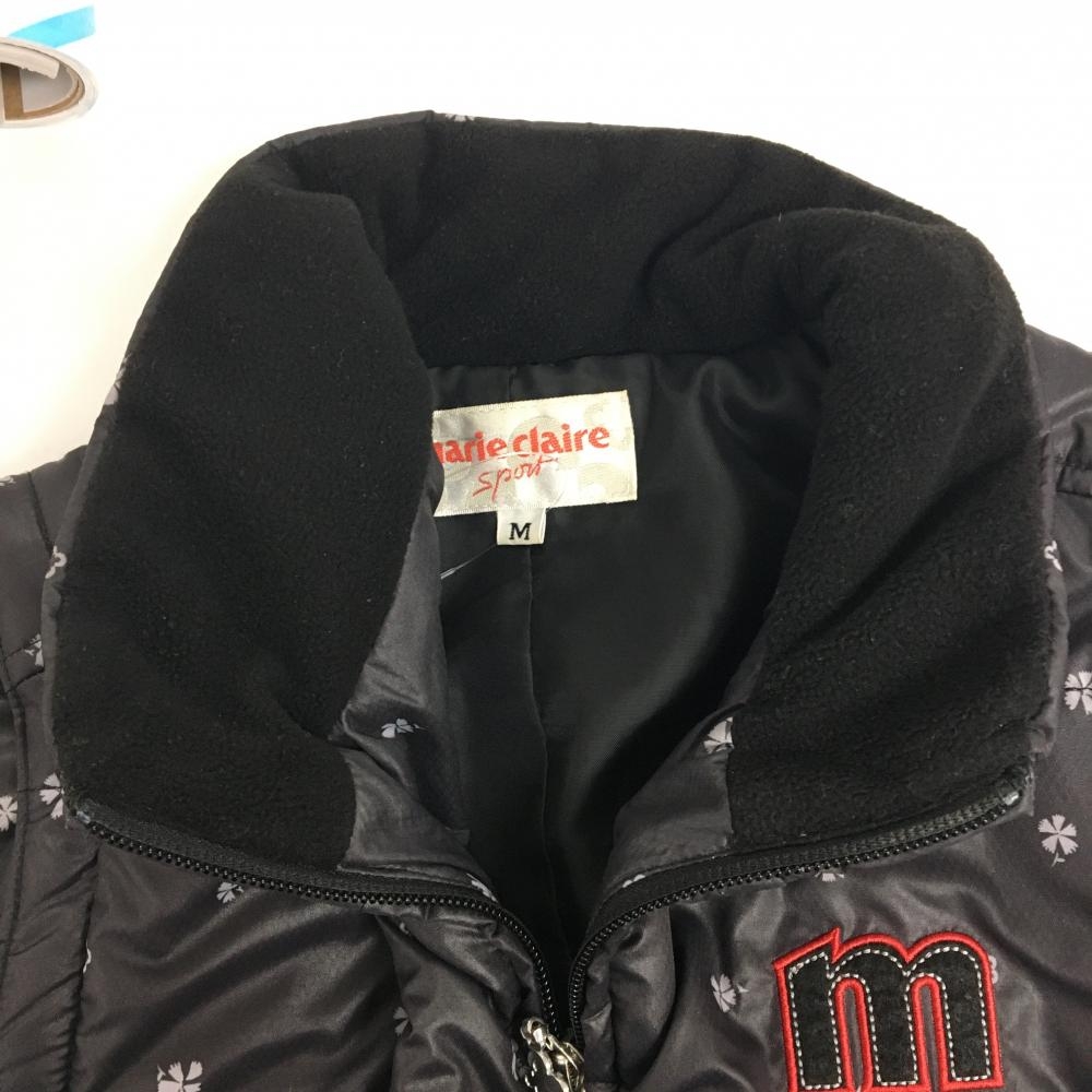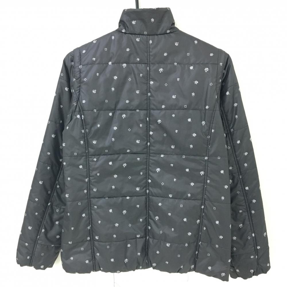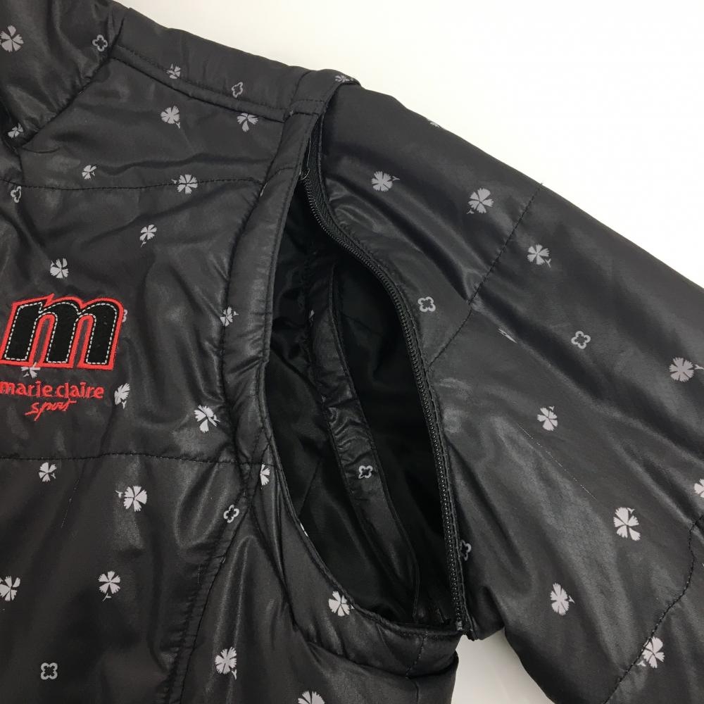 マリクレールスポール 2WAY中綿ジャケット 黒×グレー 総柄 袖着脱可 レディース M ゴルフウェア marie claire