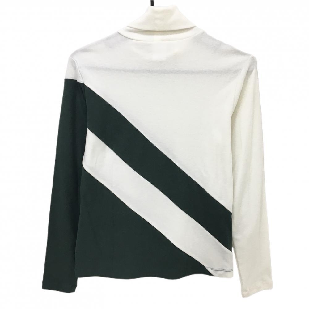 【超美品】デサントゴルフ 長袖ハイネックシャツ 白×ダークグリーン バイカラー レディース M ゴルフウェア 2023年モデル DESCENTE
