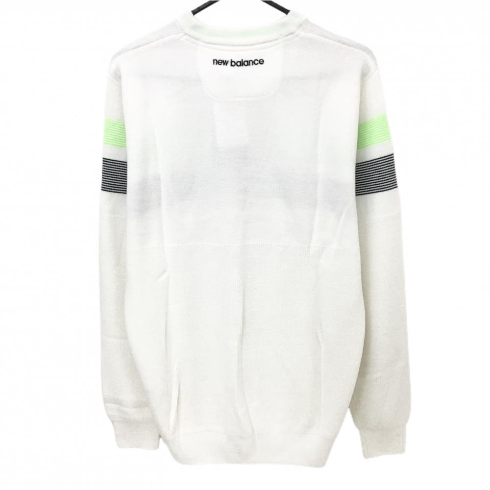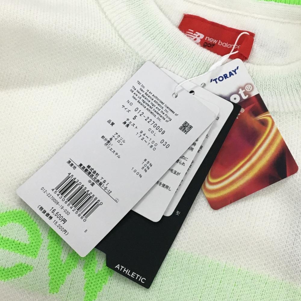【新品】ニューバランスゴルフ セーター 白×黒×蛍光グリーン ロゴ ニット ダイナホット メンズ 5(L) ゴルフウェア New Balance