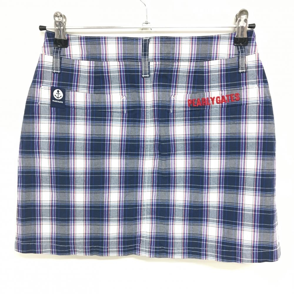 【美品】パーリーゲイツ スカート ネイビー×白 チェック レディース 0(S) ゴルフウェア PEARLY GATES