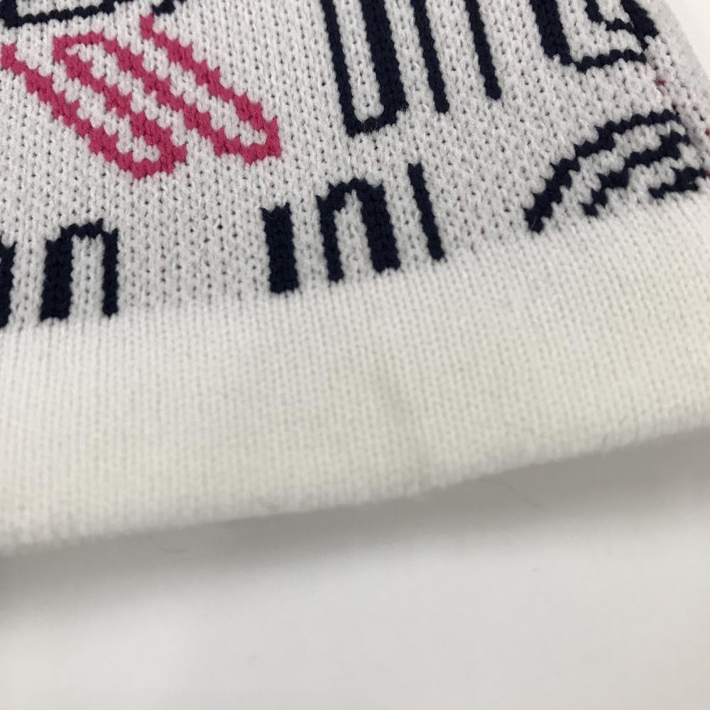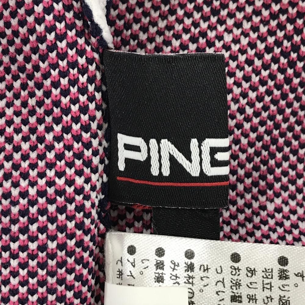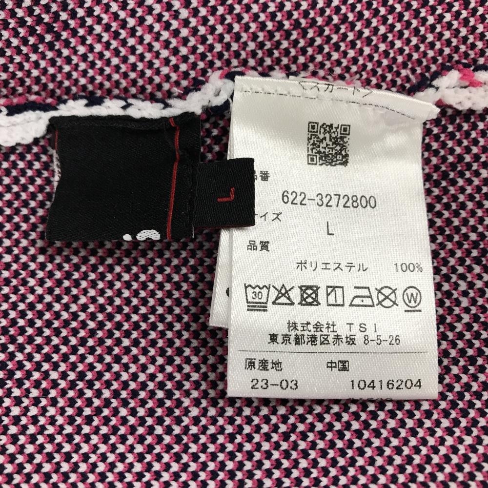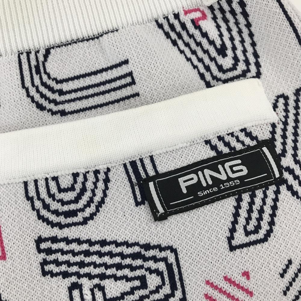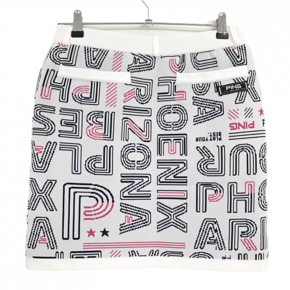 【美品】ピン ニットスカート 白×黒×ピンク 英字総柄 ウエストゴム レディース L ゴルフウェア 2023年モデル PING