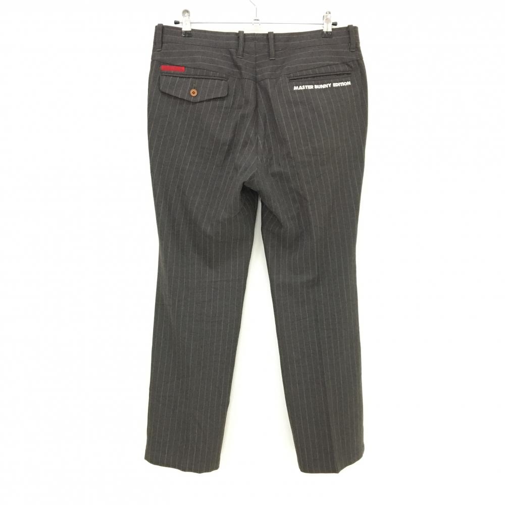 【超美品】マスターバニー ウールパンツ ダークブラウン×白 ストライプ ロゴ刺しゅう メンズ 6(XL) ゴルフウェア MASTER BUNNY EDITION